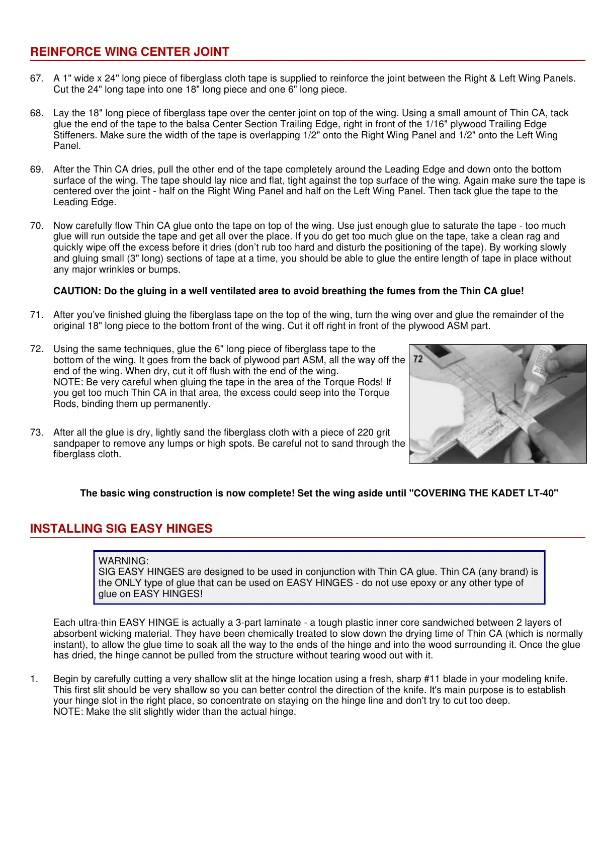 SIG EASY HINGES are designed to be used in conjunction with Thin CA glue. Thin CA (any brand) is