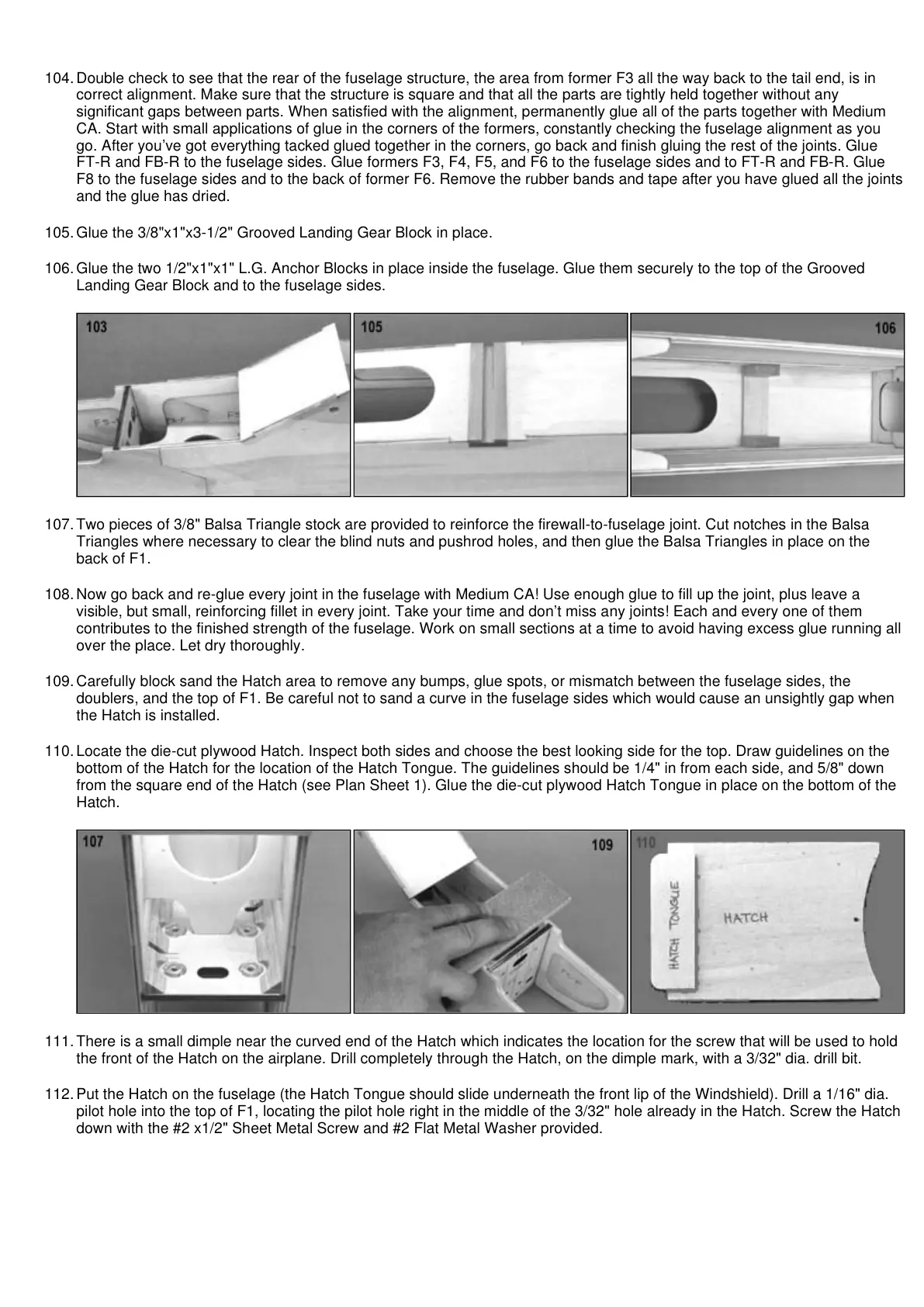 104. Double check to see that the rear of the fuselage structure, the area from former F3 all the way back to the tail end, is in