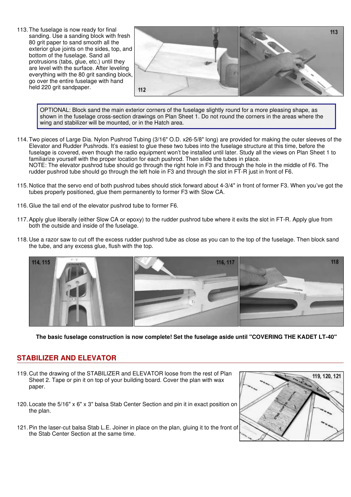 The basic fuselage construction is now complete! Set the fuselage aside until "COVERING THE KADET LT