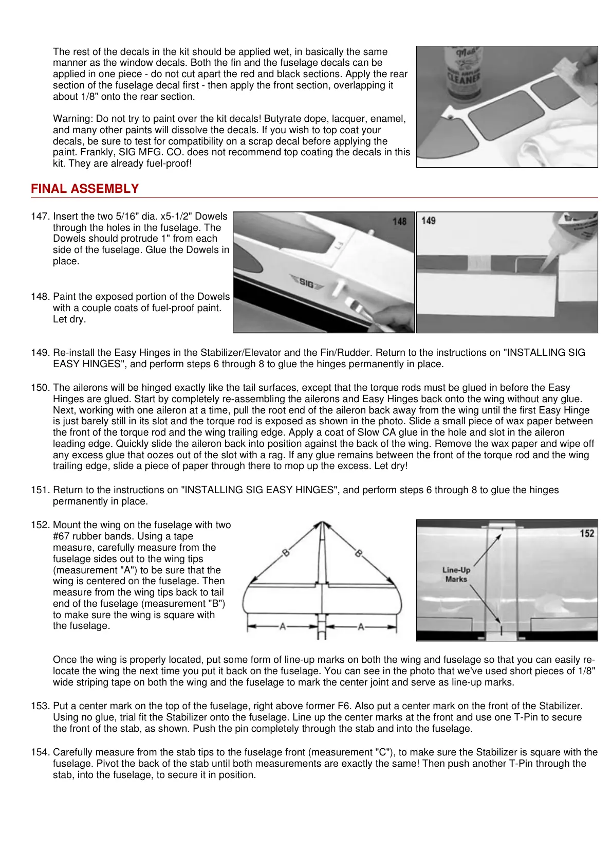 Re-install the Easy Hinges in the Stabilizer/Elevator and the Fin/Rudder. Return to the instructions on "INSTALLING SIG