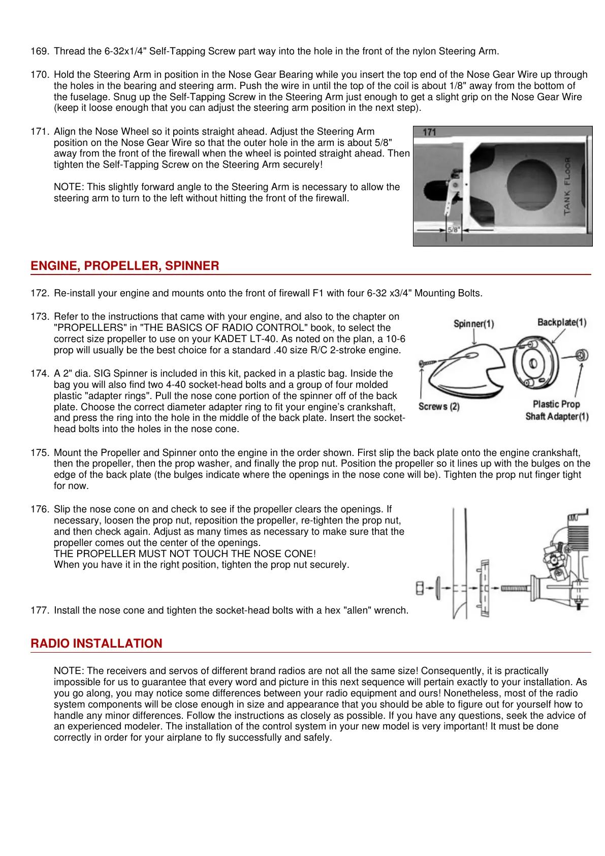 correct size propeller to use on your KADET LT-40. As noted on the plan, a 10-6