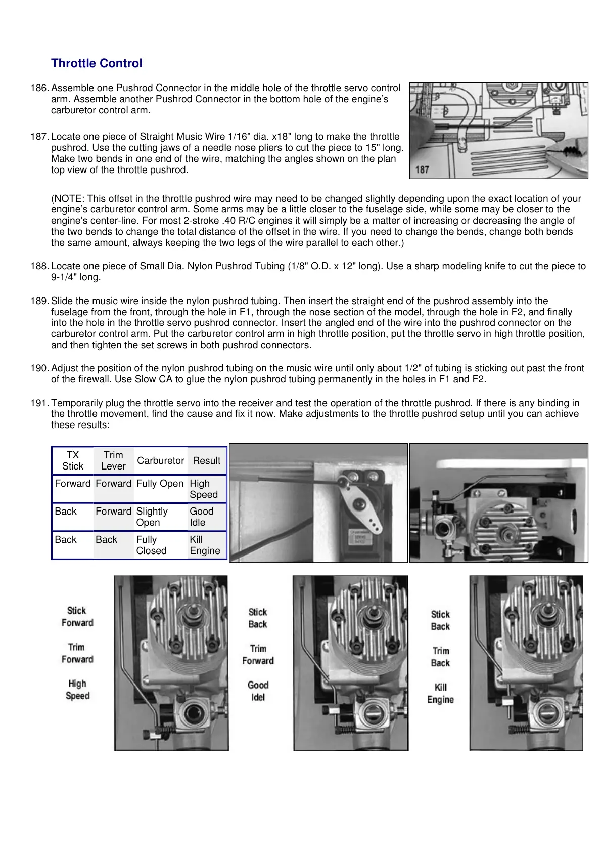 (NOTE: This offset in the throttle pushrod wire may need to be changed slightly depending upon the exact location of your