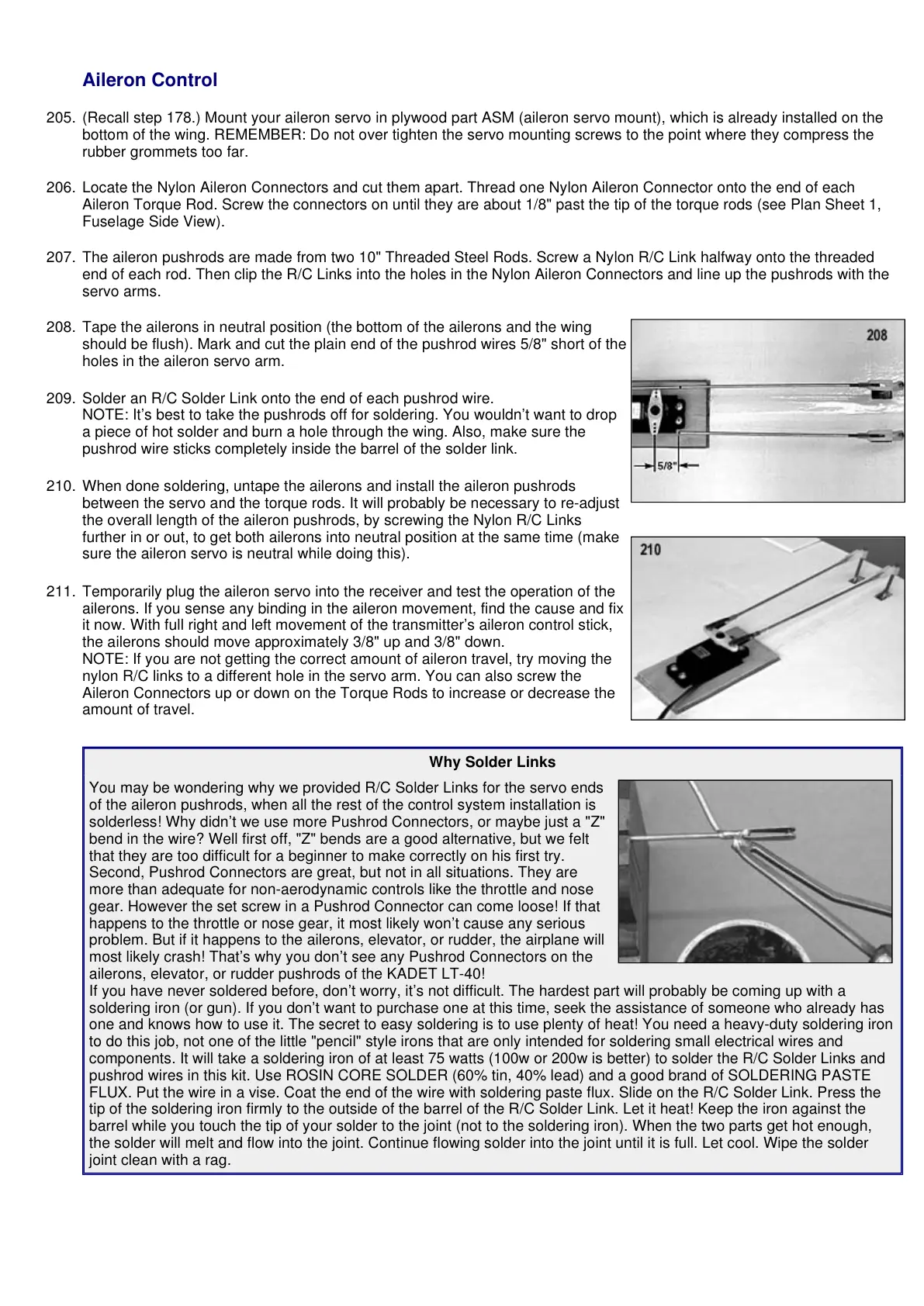 ailerons, elevator, or rudder pushrods of the KADET LT-40!