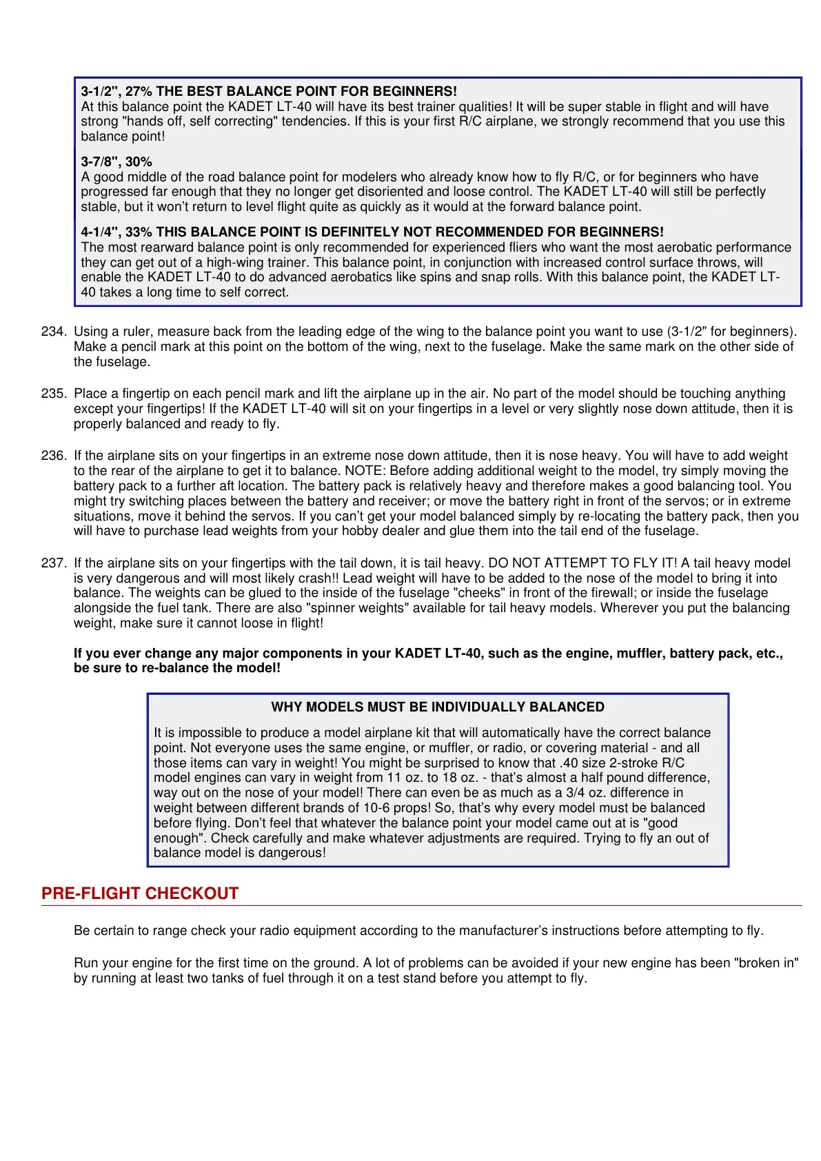 before flying. Don’t feel that whatever the balance point your model came out at is "good