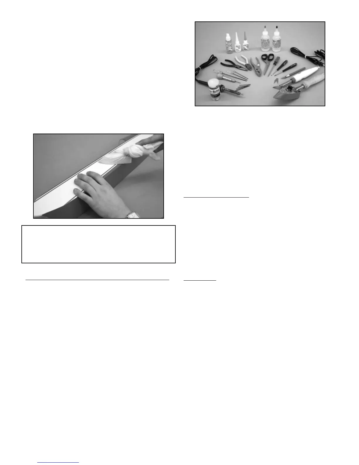 inventory the parts in your kit. Note that the hinges for the rudder,