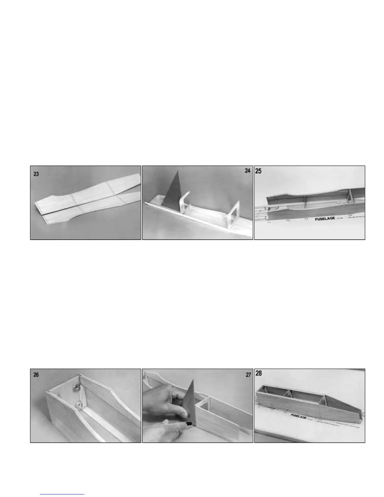 b. Glue a piece of 1/4" balsa triangle along the bottom of each fuselage side. Notice that the aft end of the triangle
