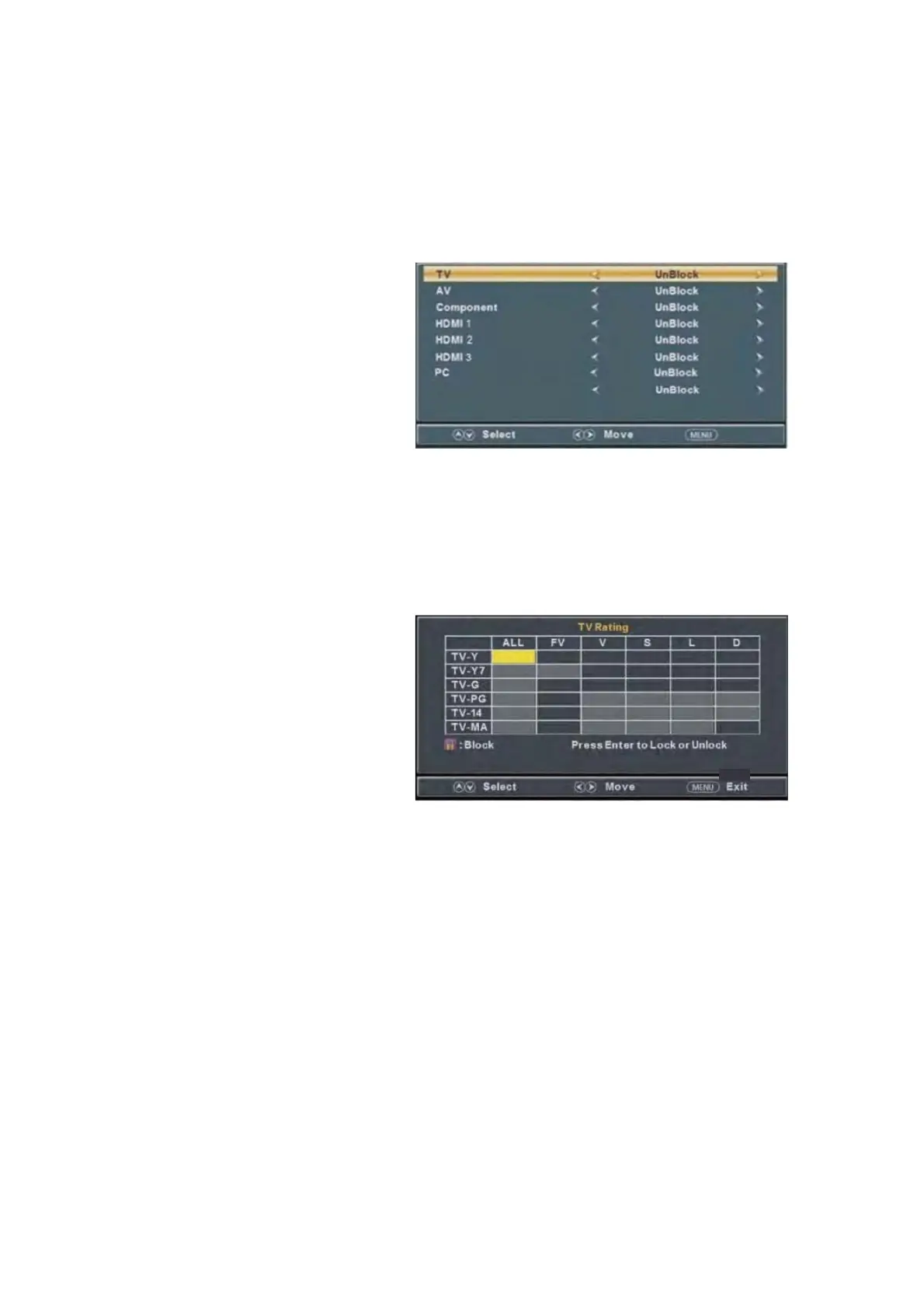 elect “US Rating” and press “ENTER/f” button to enter sub-menu.