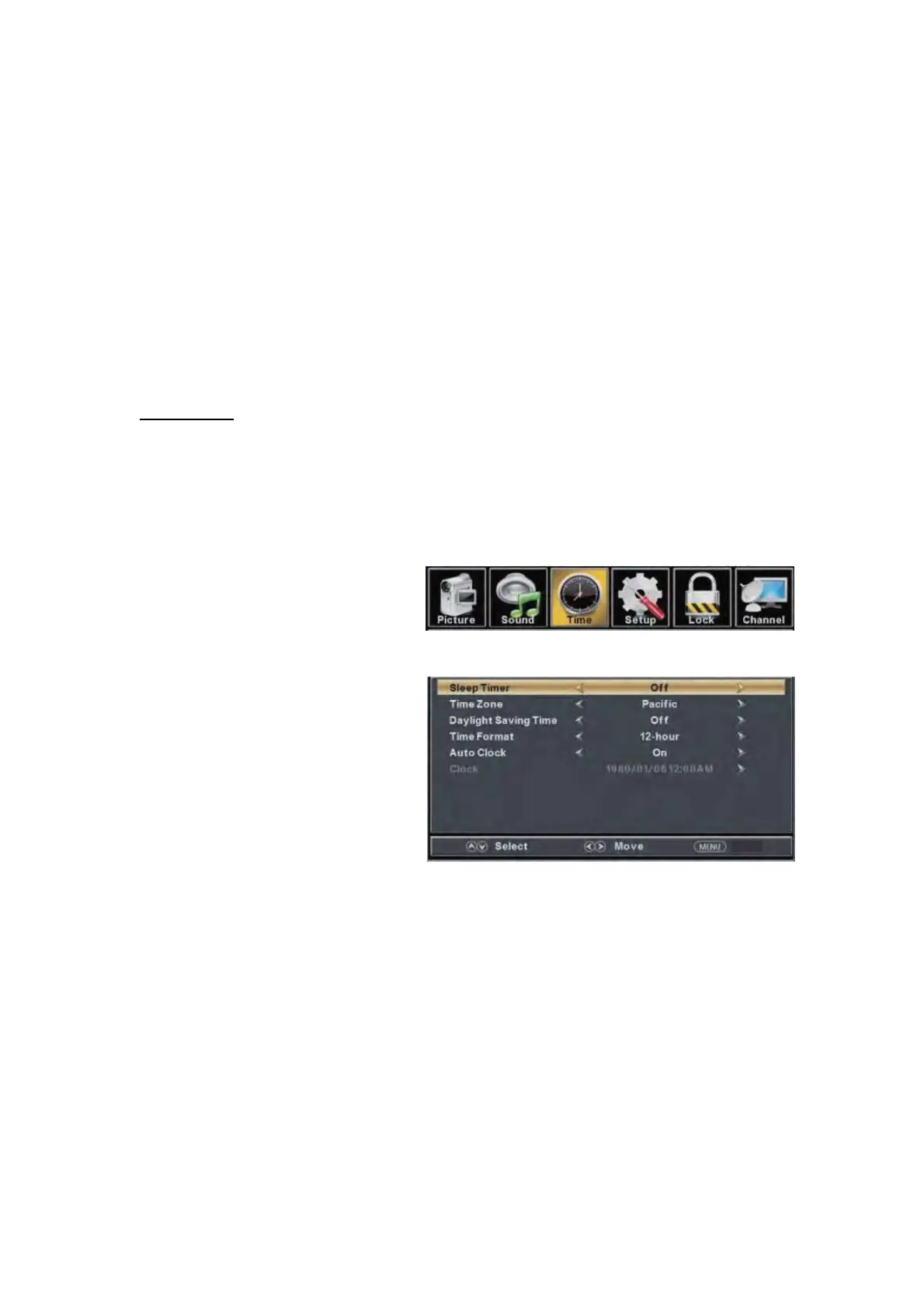 botón “e/f” para seleccionar el menú “TIME” (TIEMPO). Y presione el botón