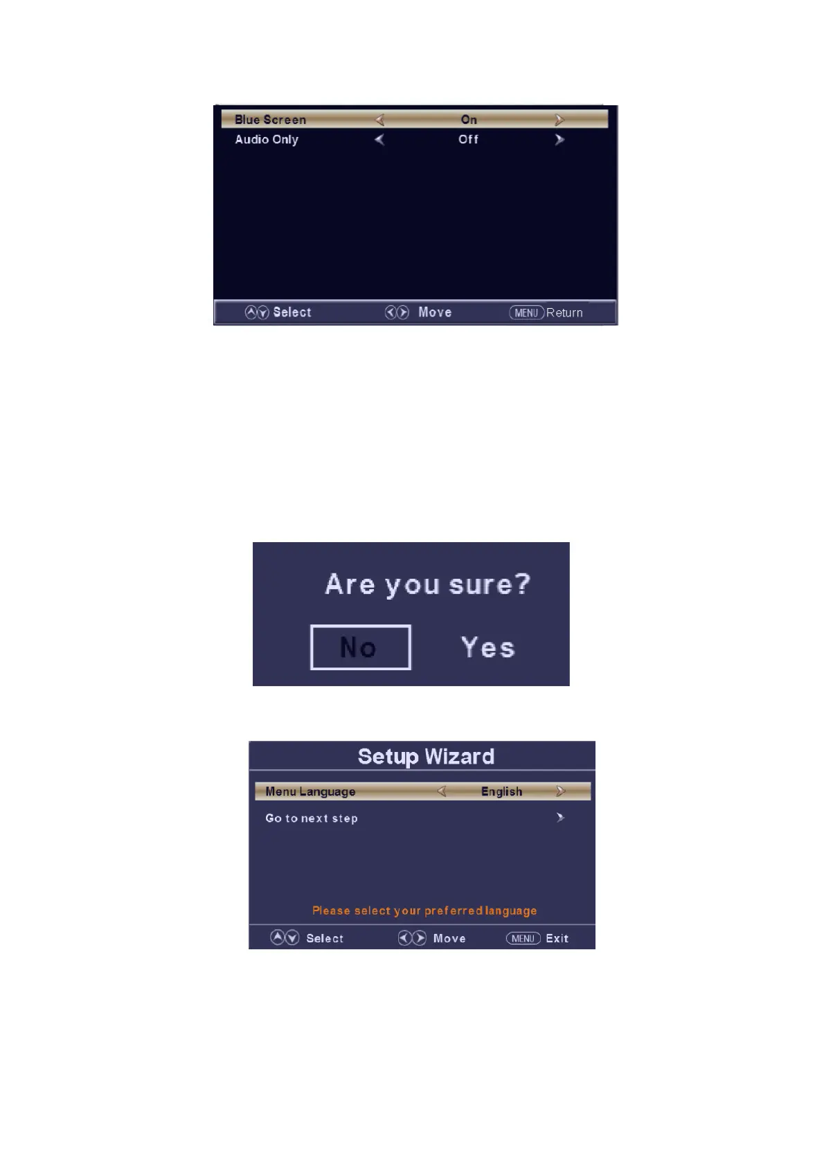 b. Presione el botón “c/d” para seleccionar " Blue Screen (Pantalla azul)" y presione el botón