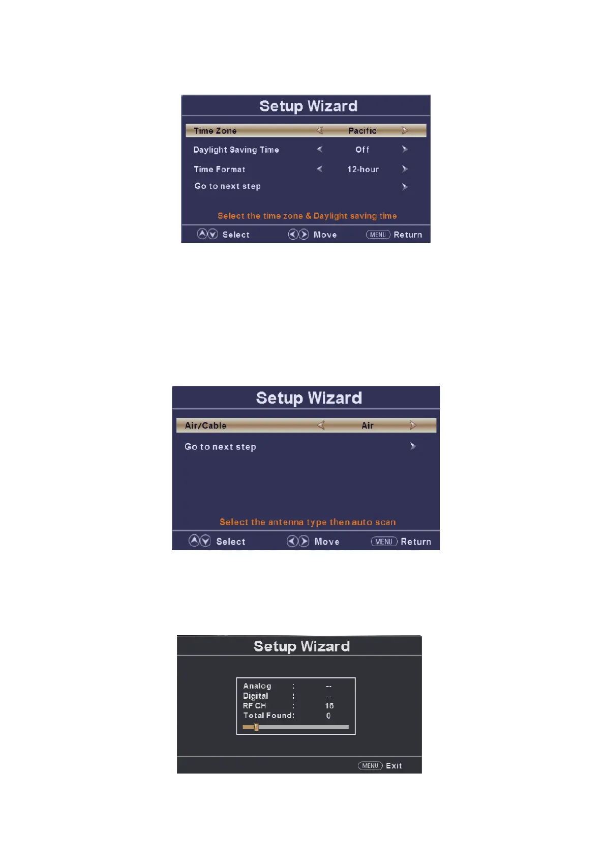 esione el botón “c/d” para seleccionar " Air/Cable (Aire/cable)” y presione le botón