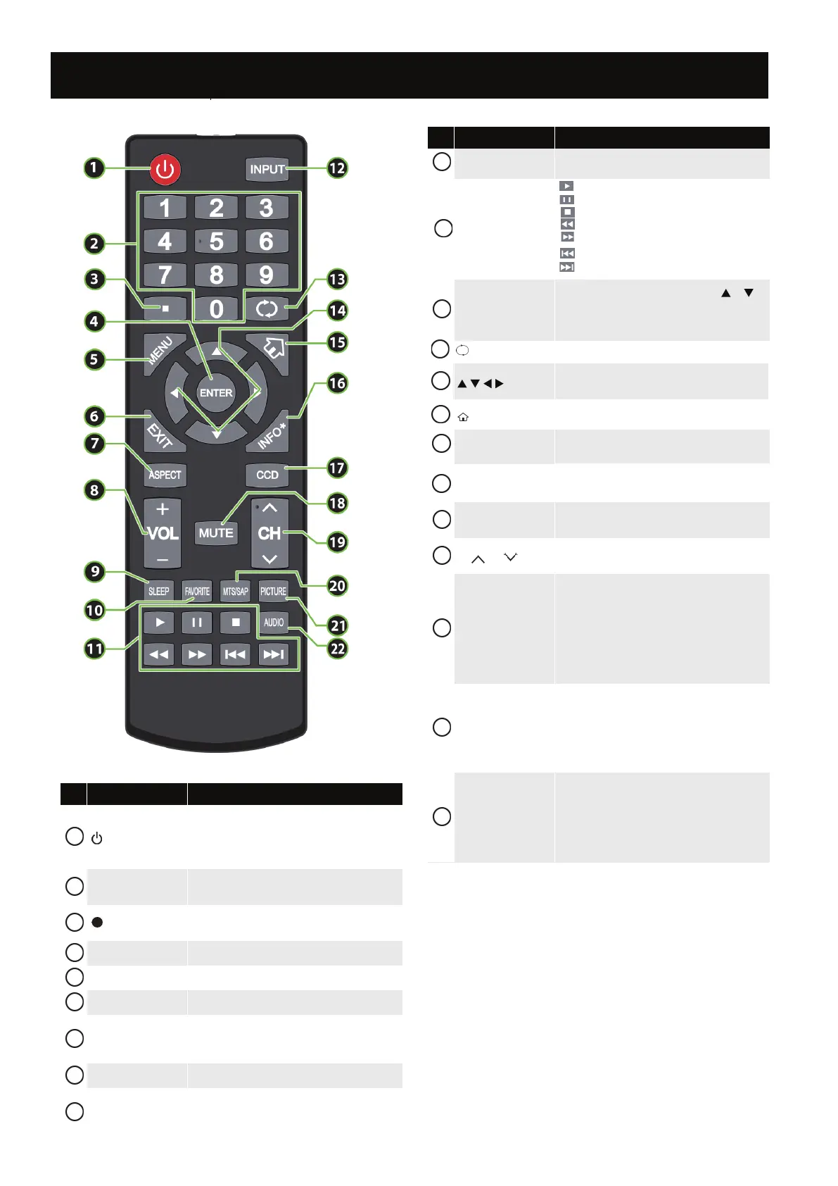 (return) In TV mode, press to return to the previous channel.