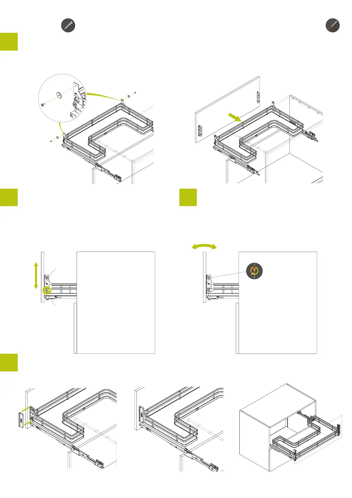 Allentare le due viti M6x10, per regolare l’antina in avanti ed in dietro.