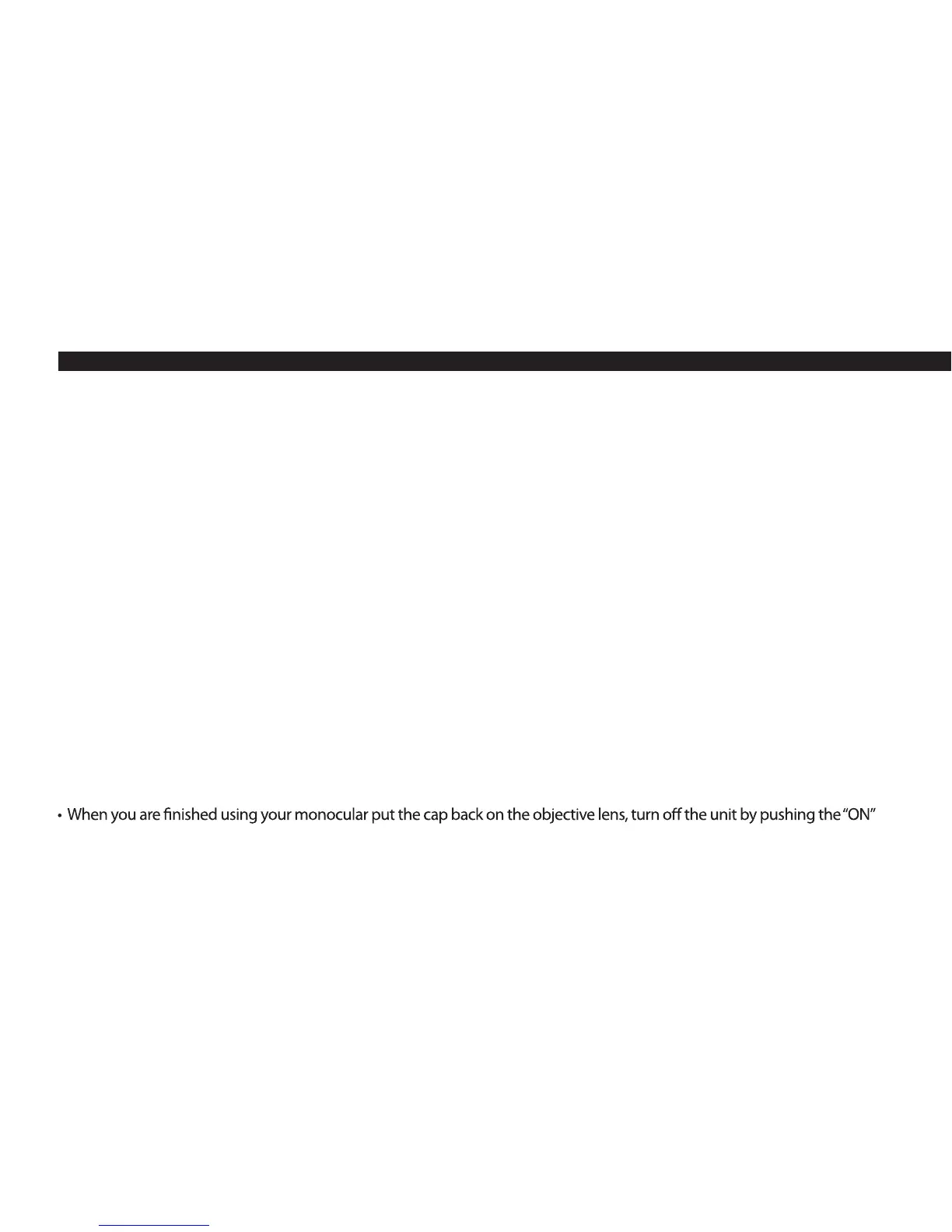 • Avoid dropping or otherwise shocking the unit. The monocular incorporates a sophisticated optical system which