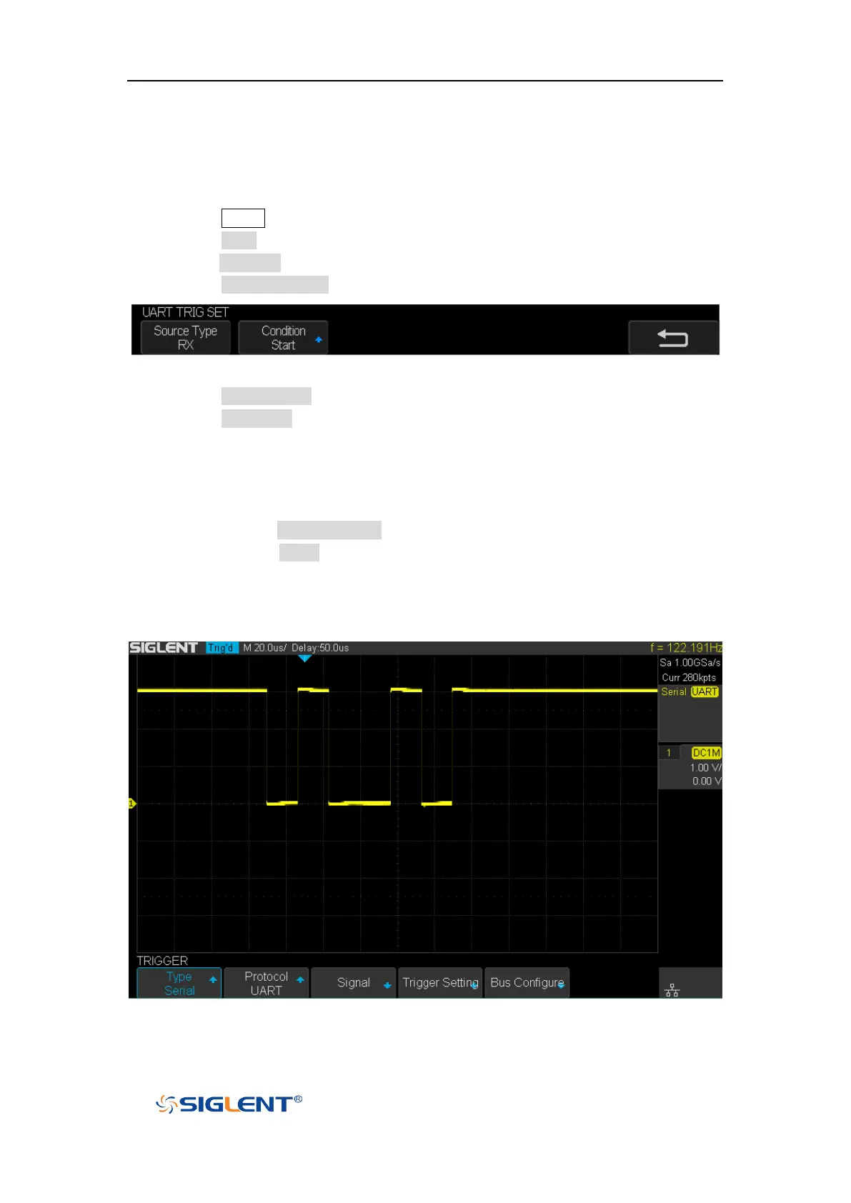 4. Press the Trigger Setting softkey to enter UART TRIG SET menu.