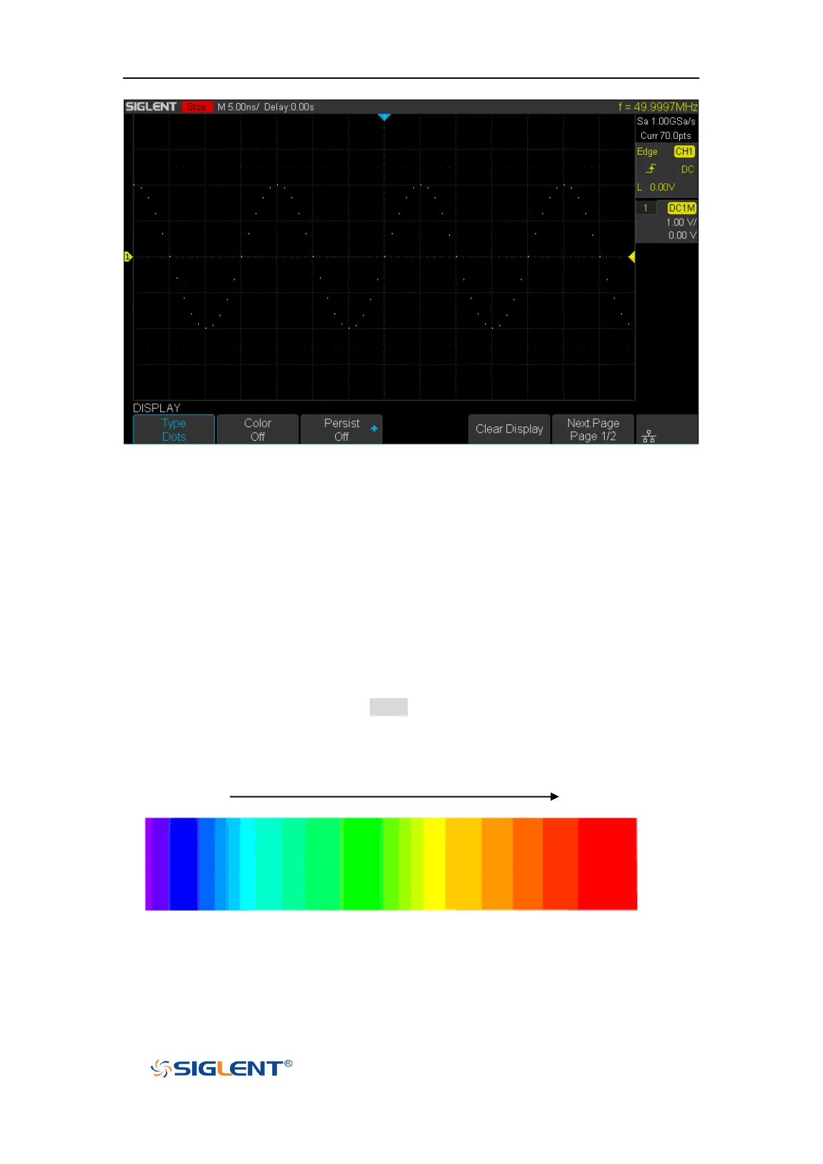 The picture below shows the change of color from cold to warm. Press the Display button