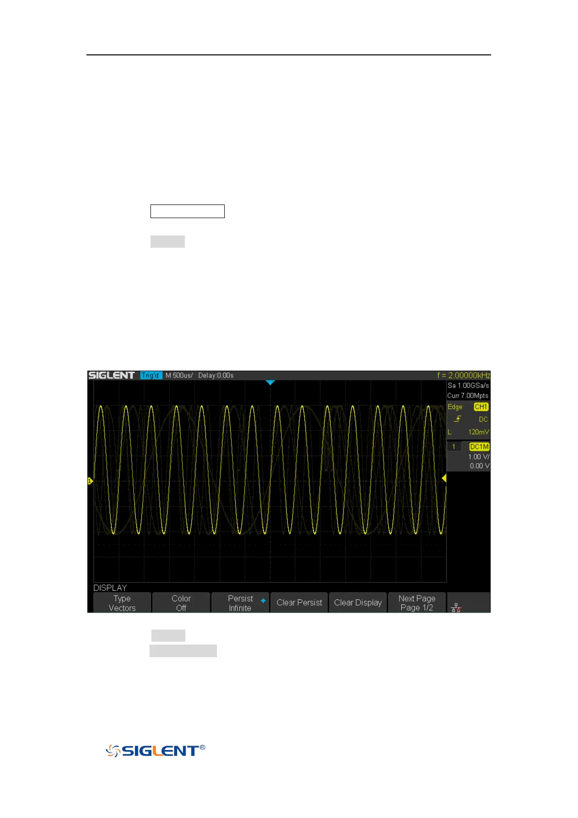 1. Press the Display/Persist button on the front panel to enter the DISPLAY function