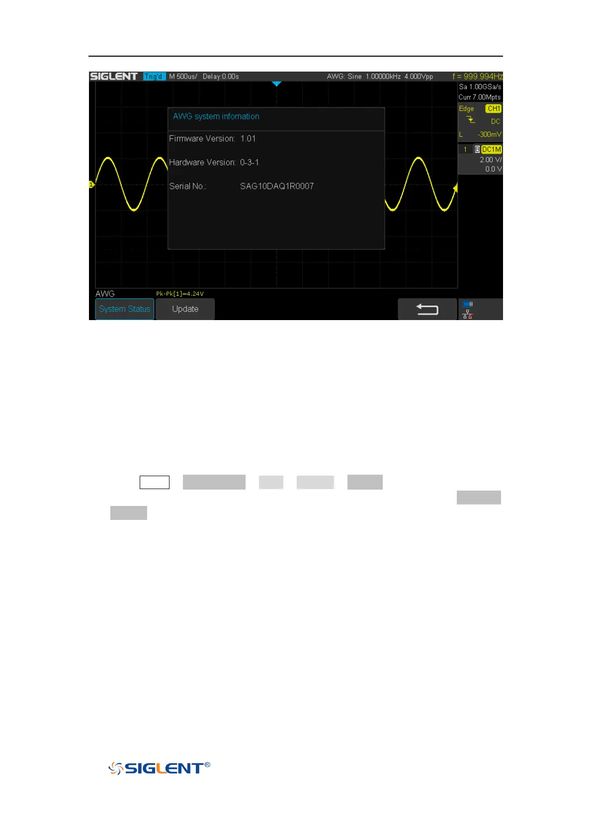 2) Press Utility →NextPage4/4→ AWG →System →Update.