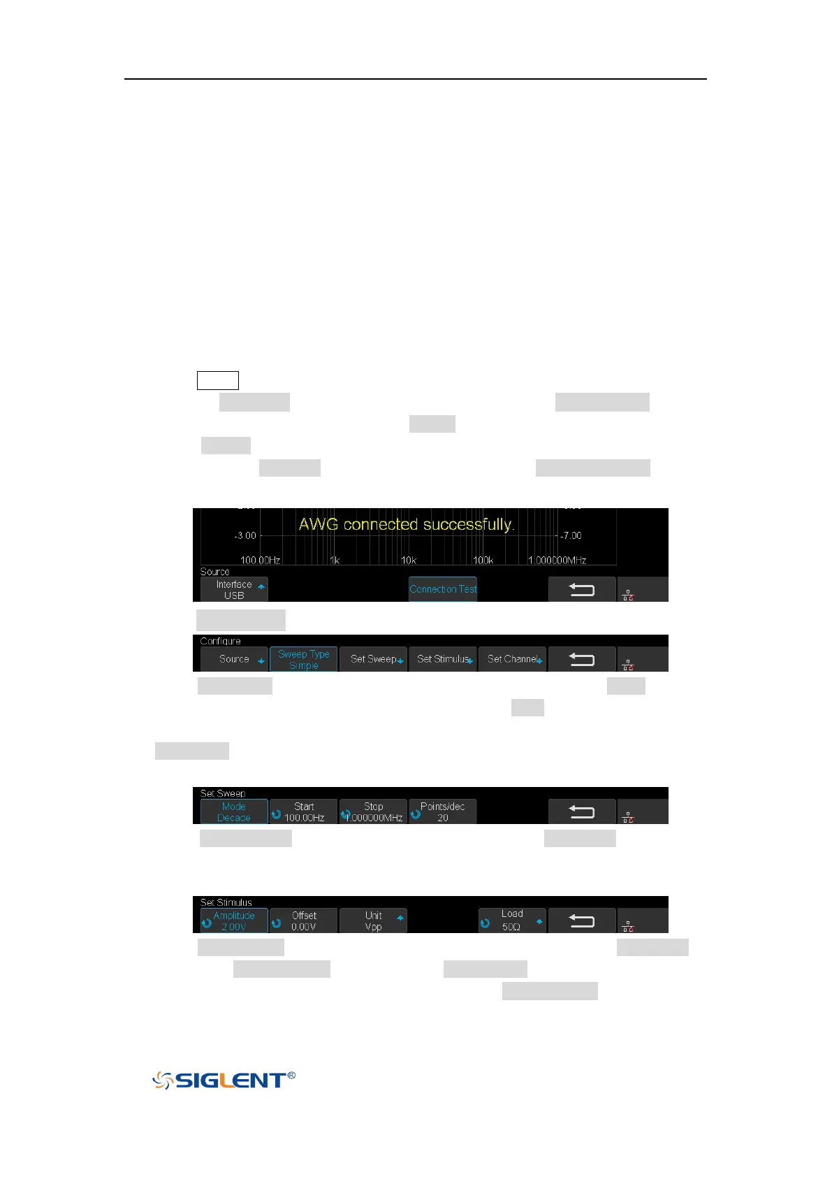 “Decade” to sweep frequency logarithmically. Press Start and use the Universal