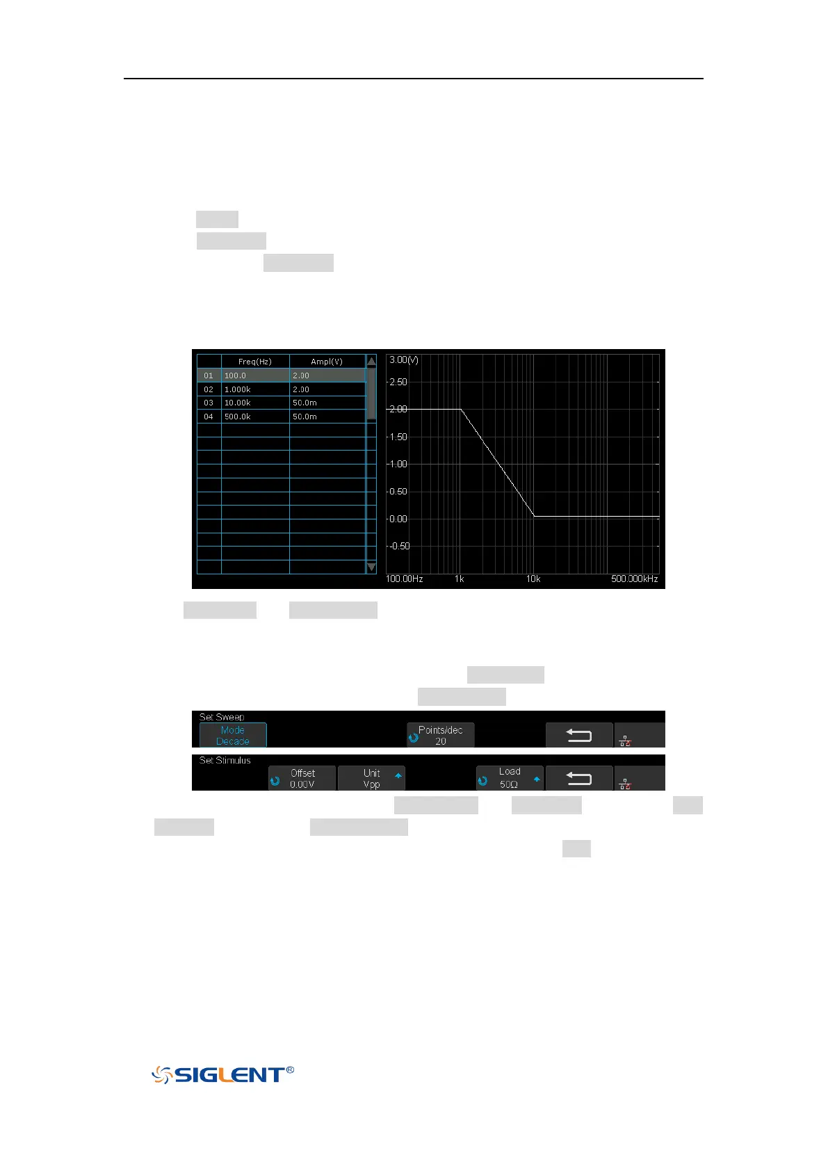 activated, press Edit Table will cycle the cursor between frequency, amplitude and
