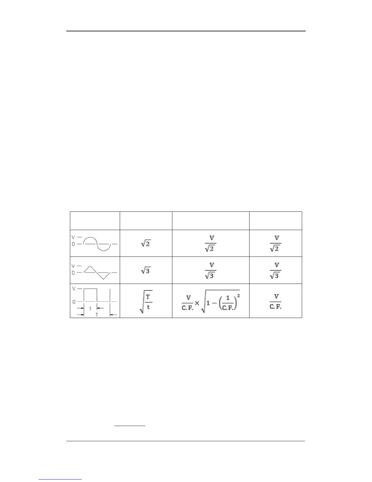 Table 4- 1 True RMS AC Measurement of Sine, Triangle and Square waves
