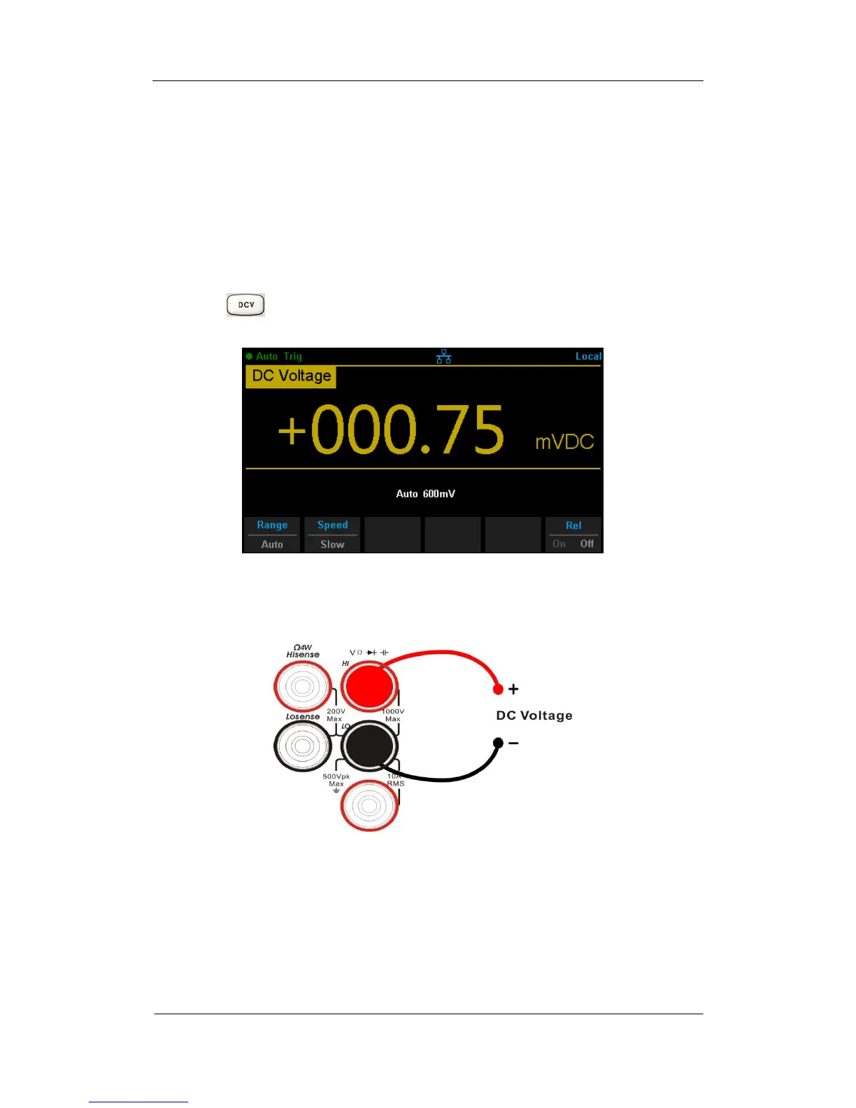 1. Press on the front panel to enter the DC Voltage measurement