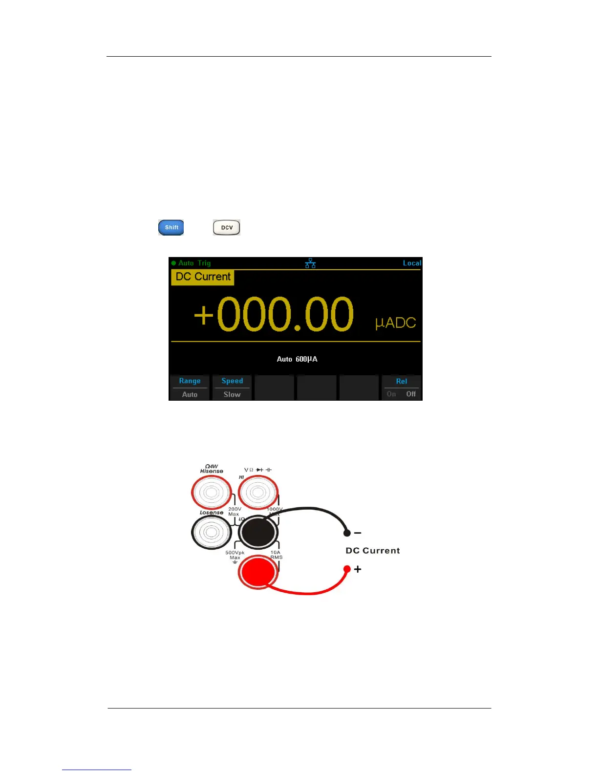 1. Press and on the front panel to enter the DC Current