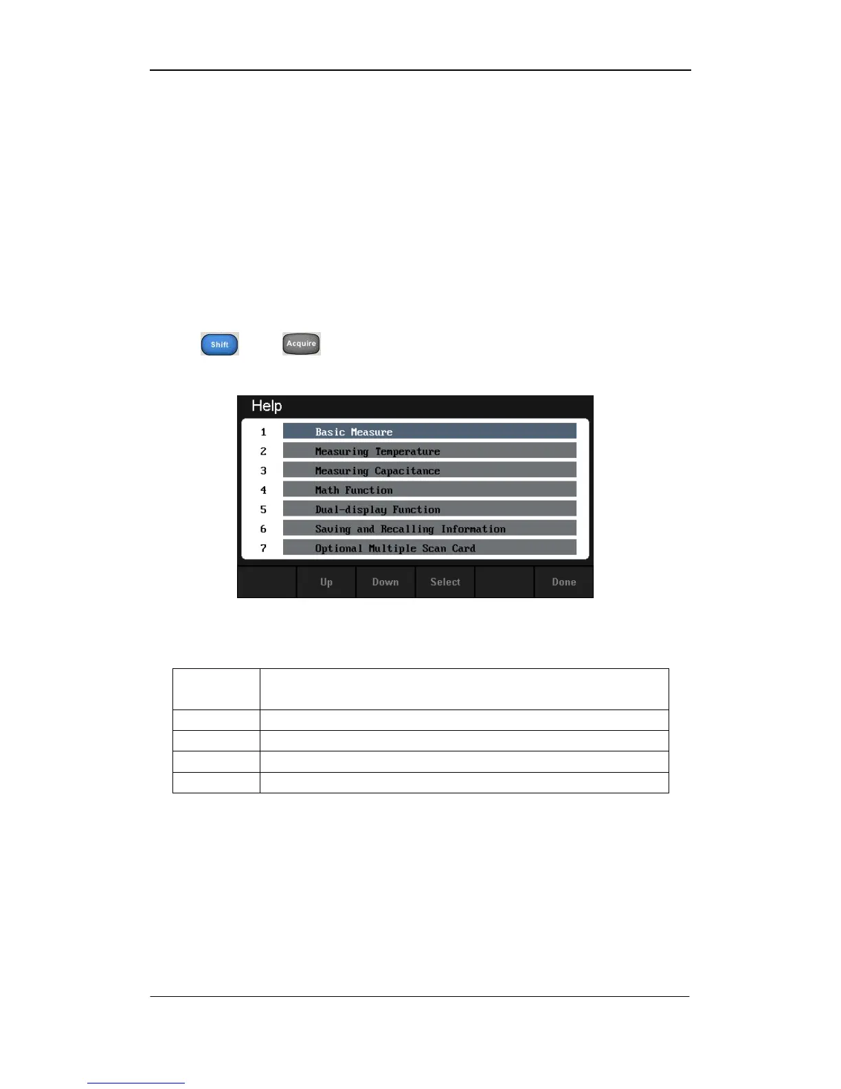 Press and to enter the help list, as the following diagram