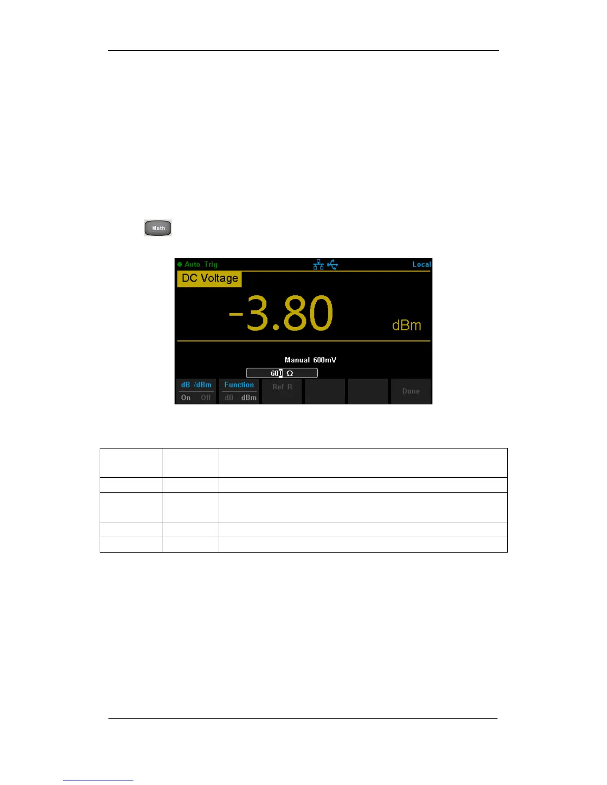 When dBm function is turned on, the measured value of voltage is transformed