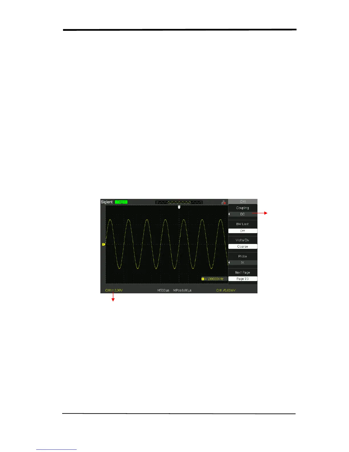 Take the CH1 for example; the tested signal is a sine wave signal with DC