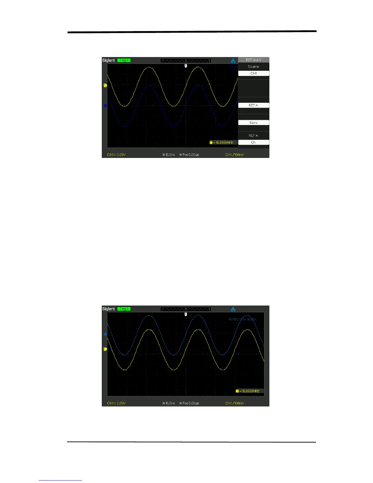1. Press the “REF” menu button to display the “Reference waveform menu”.
