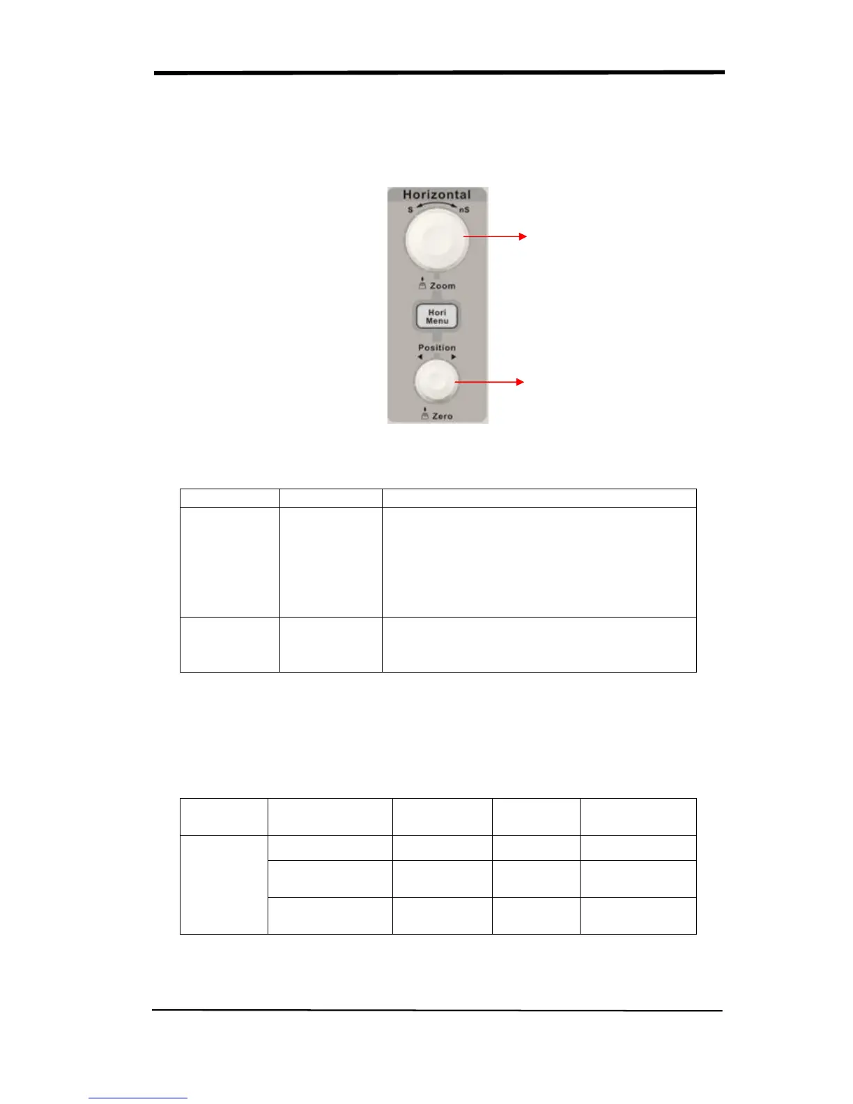 As follow Picture, there are one button and two knobs in the HORIZONTAL area.