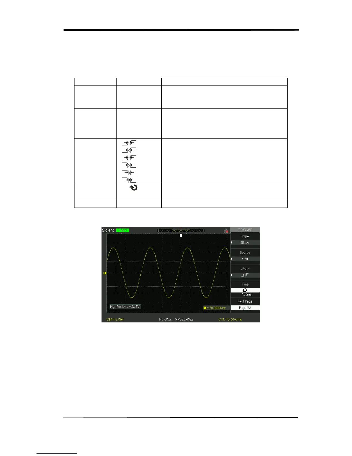 Table 2-19 Slope trigger function menu 1