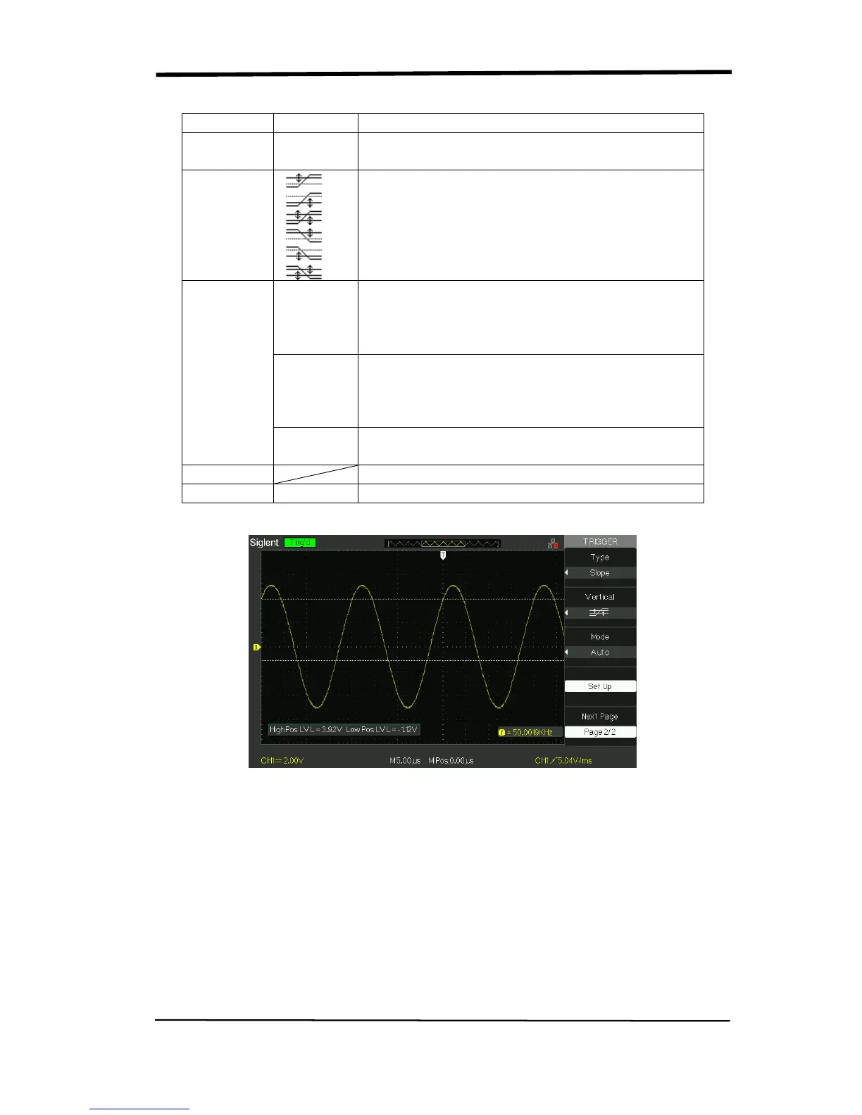 Set up Enter “Trigger setup menu” (See table 2-14).