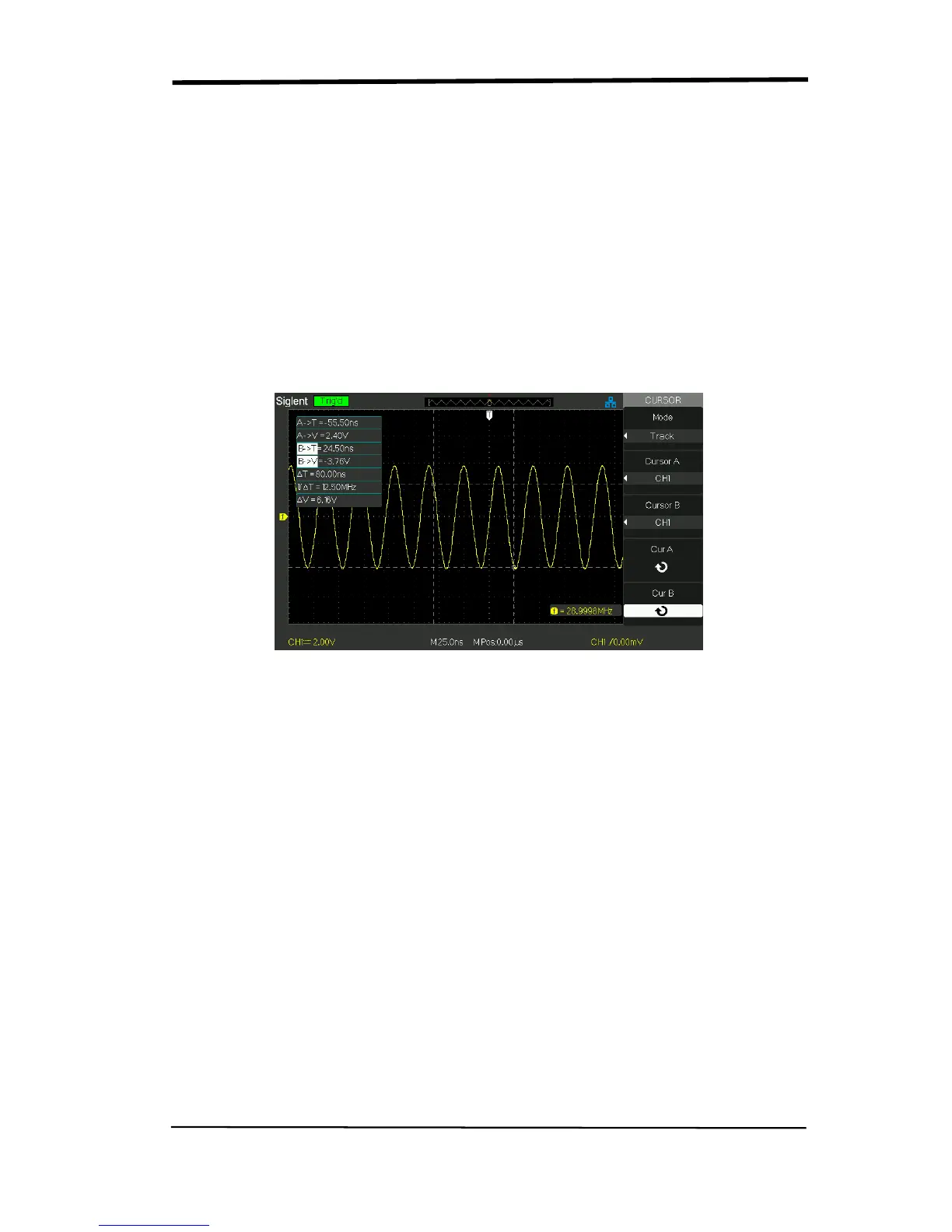 △V: Vertical space between Cursor A and Cursor B (Voltage value
