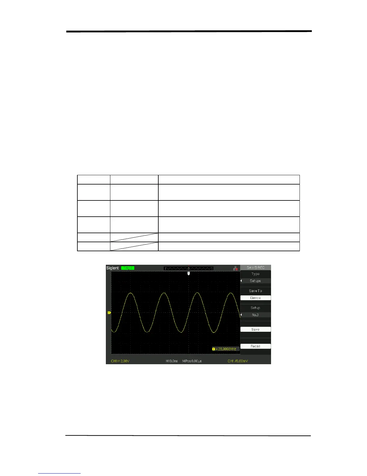 1)Press the “SAVE/RECALL” button to enter the “SAVE/RECALL” menu.
