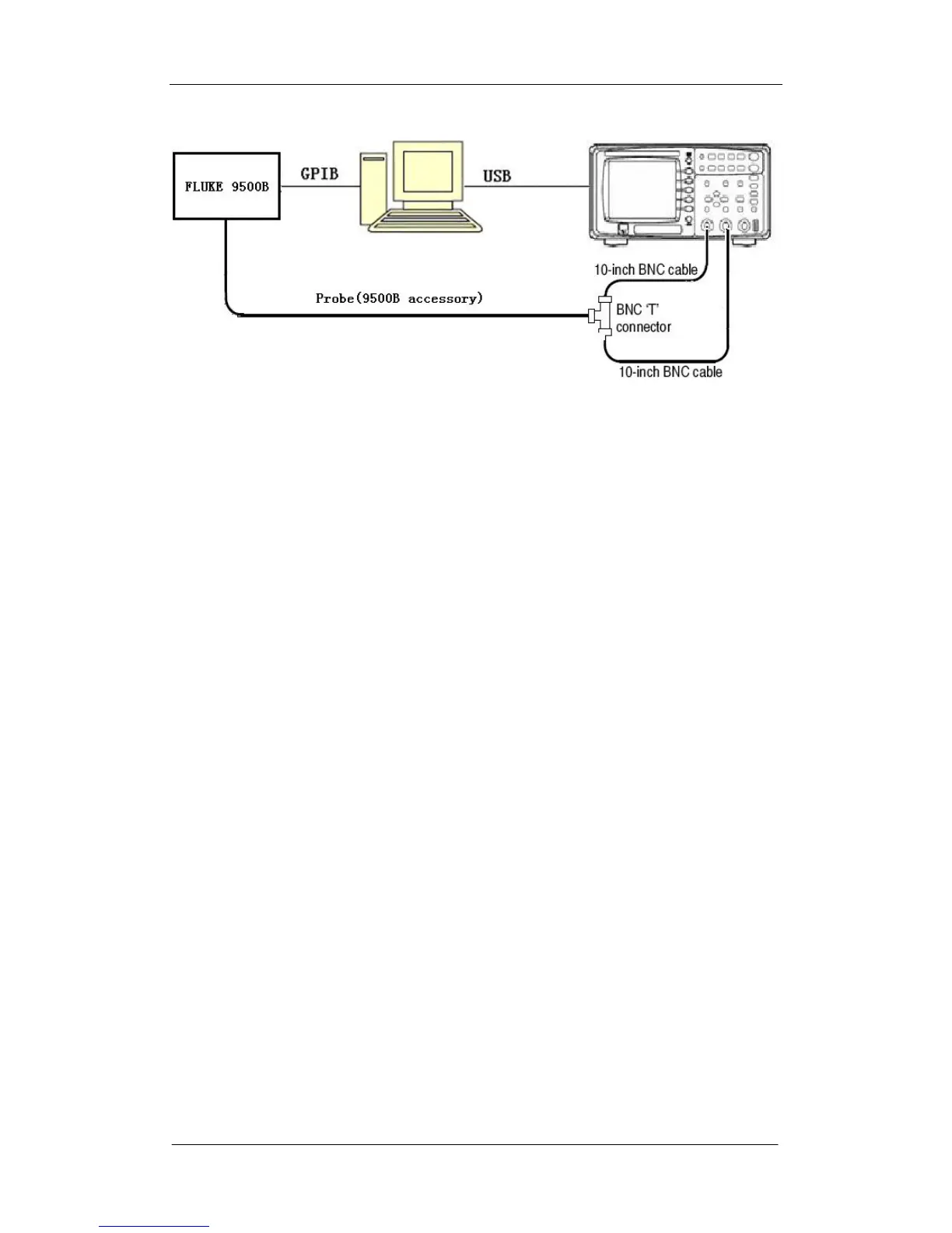 5. Connect the oscilloscope and FLUKE as figure above using the specified