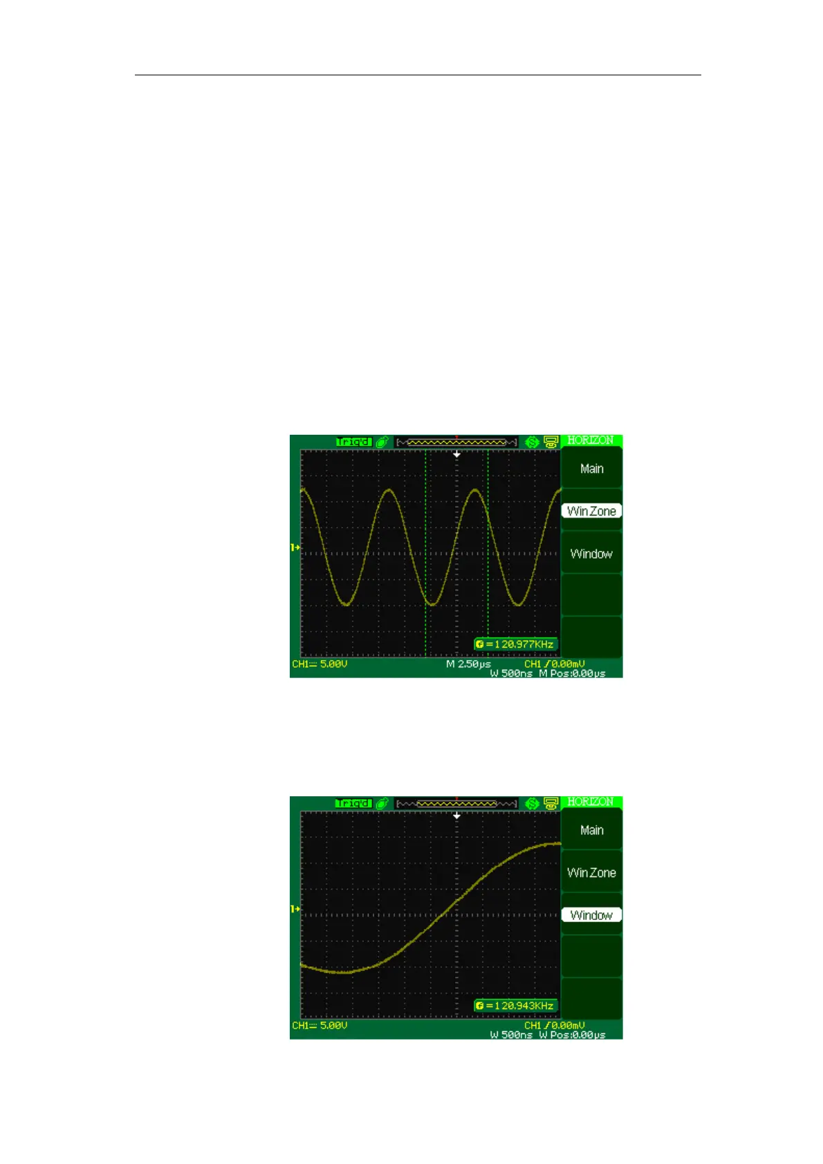 3. Turn the “S/div” knob (adjust window’s size) and turn the “Horizontal