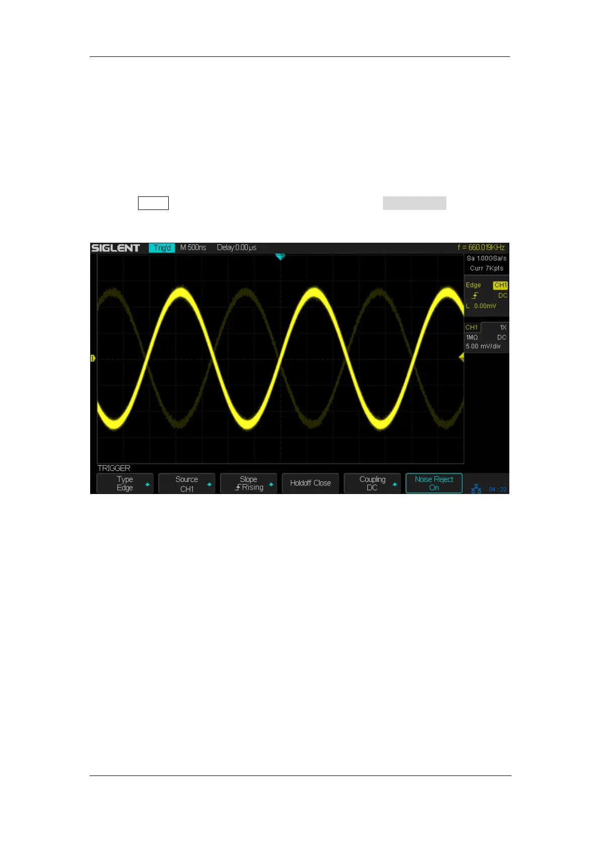 Noise Reject adds additional hysteresis to the trigger circuitry. By increasing the trigger