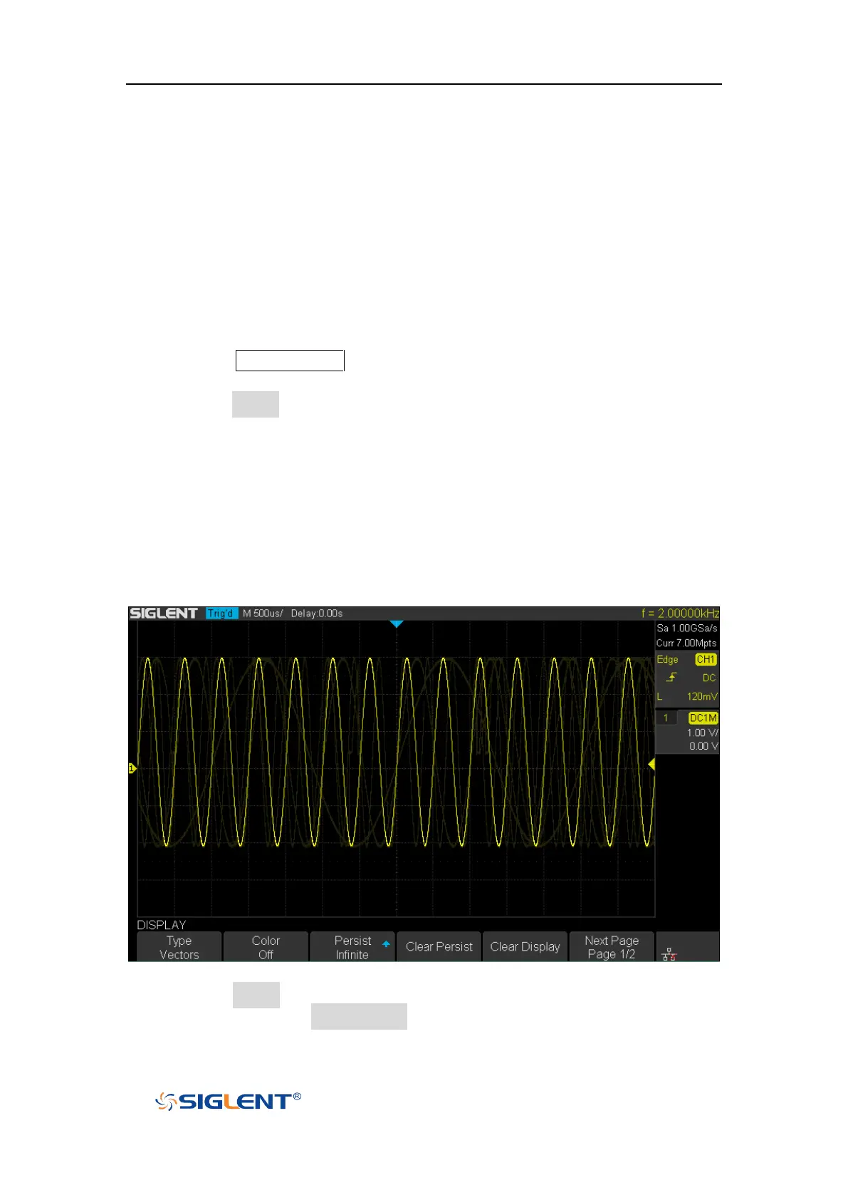 display, press the Clear Persist softkey. The oscilloscope will start to
