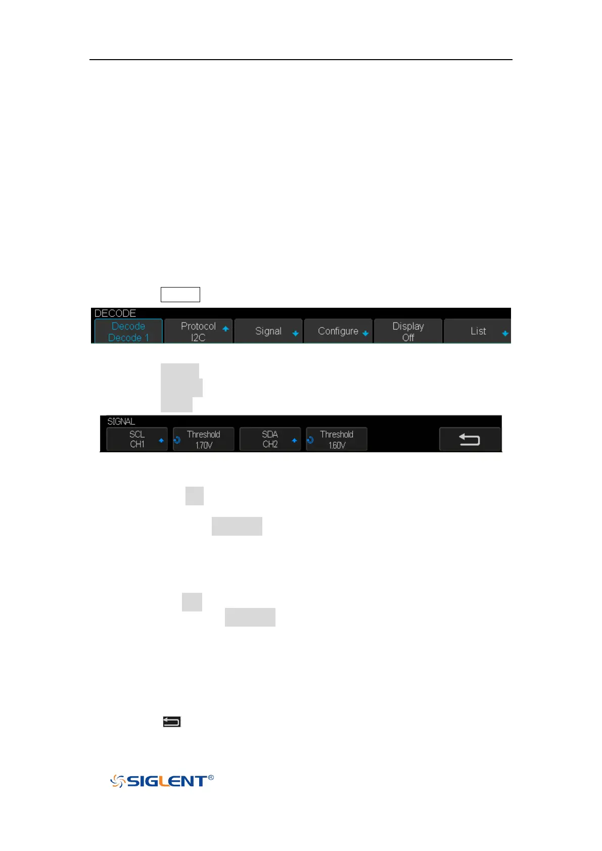 SIGLENT SDS1202X-E - I2 C Trigger and Serial Decode; Setup for I2 C Signals