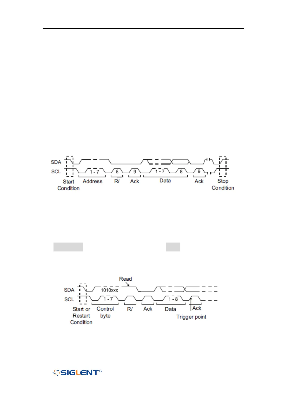 This part introduces the nine kinds of trigger conditions (Start, Stop, Restart, No Ack,