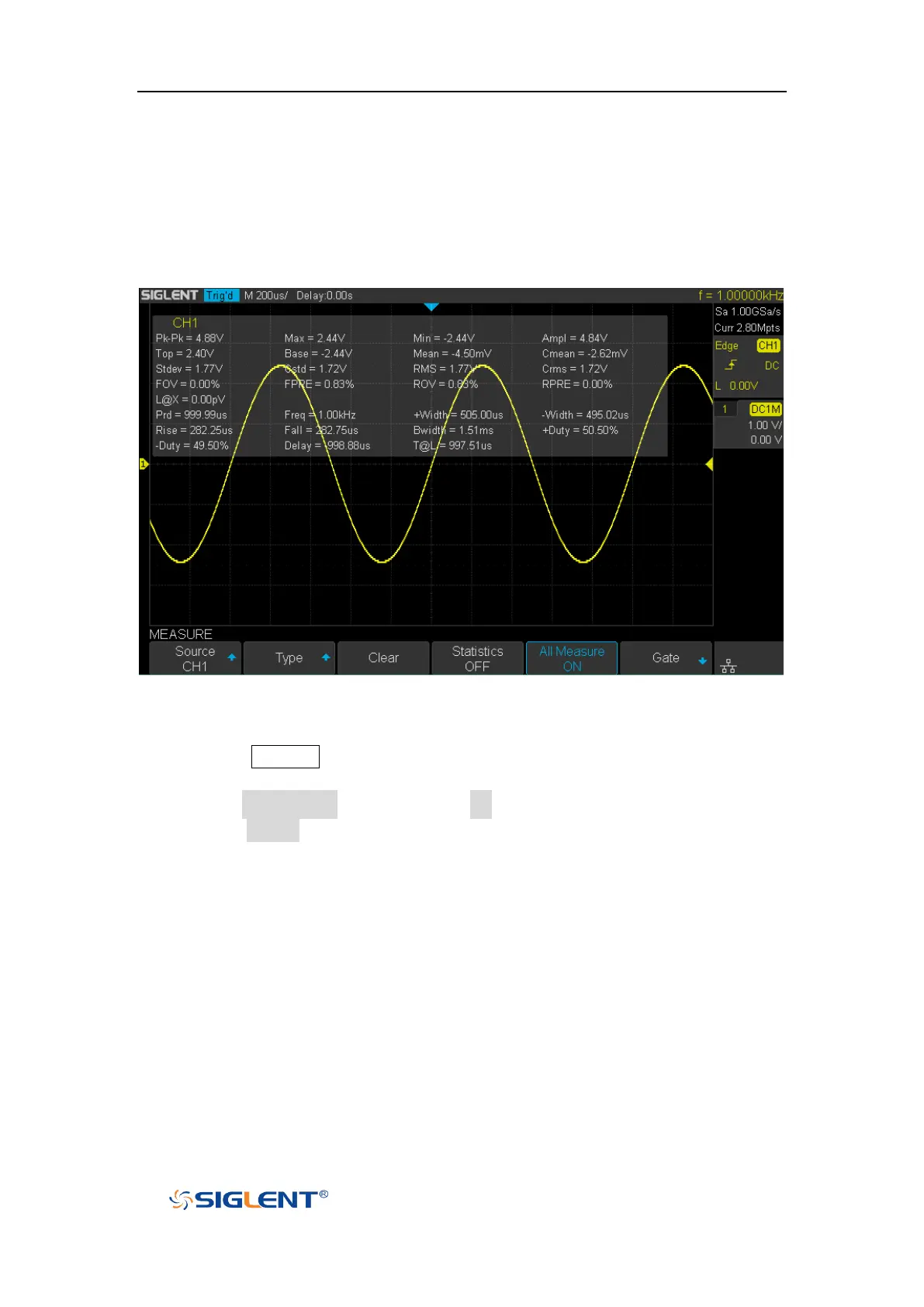 1. Press the Measure button on the front panel to enter the MEASURE function
