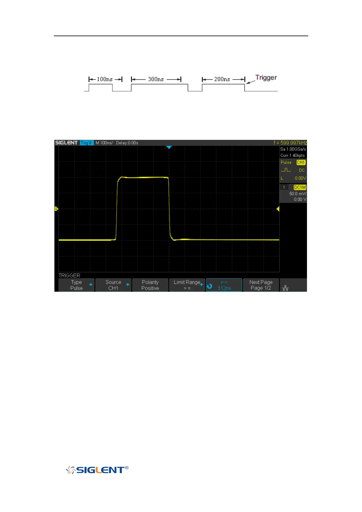 t ≤ 300ns, the waveform will trigger.