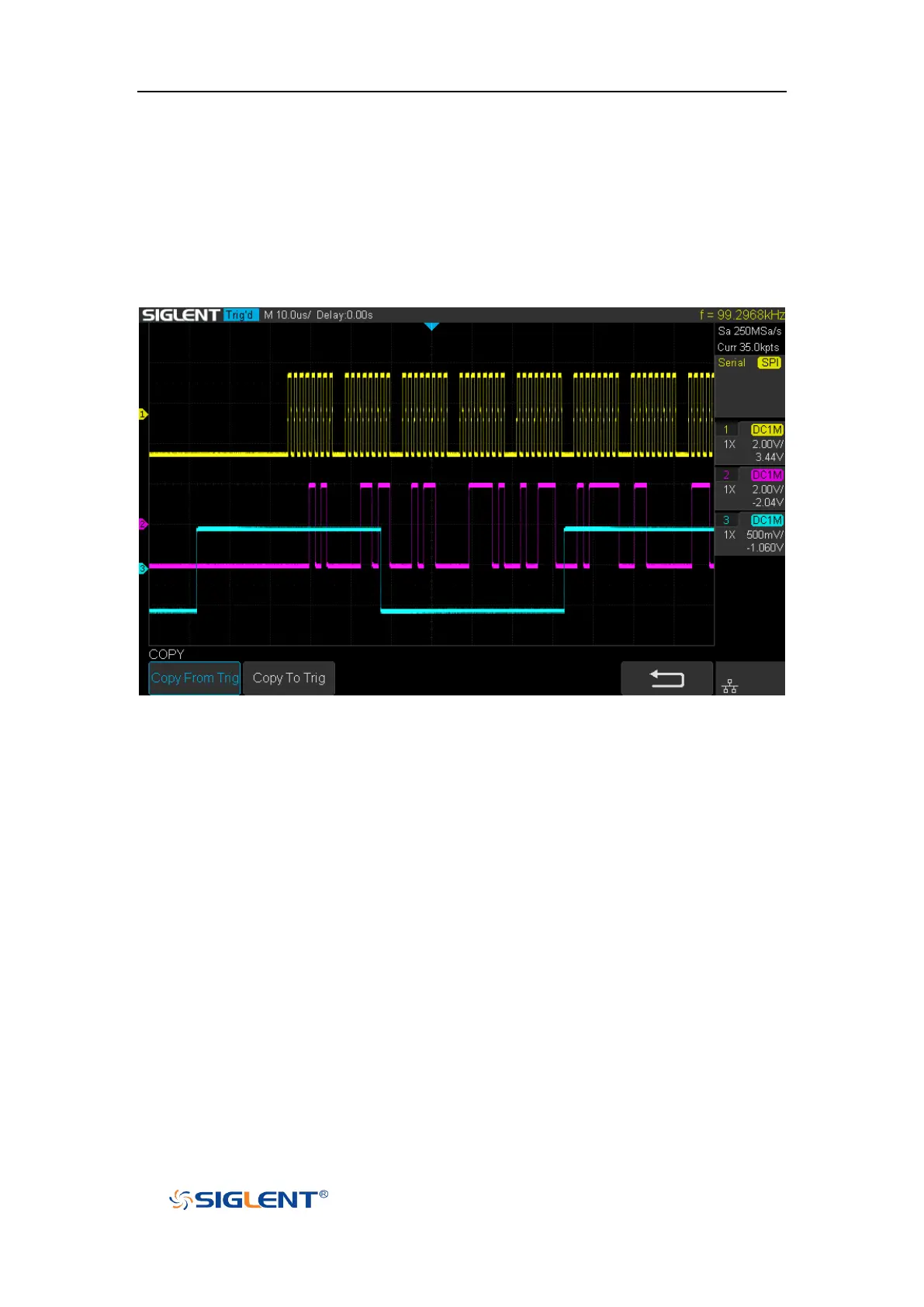 signals, then copy the trigger settings to decoding. Adjust the timebase, so that
