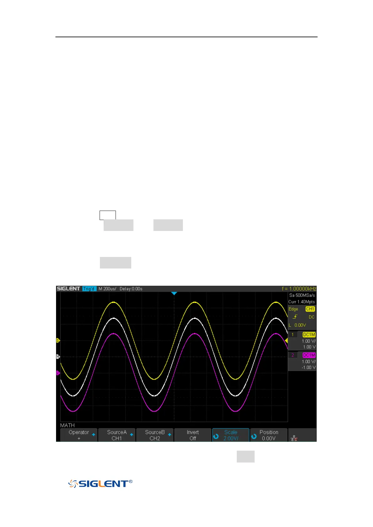 1. Press the Math button on the front panel to enter the MATH function menu.