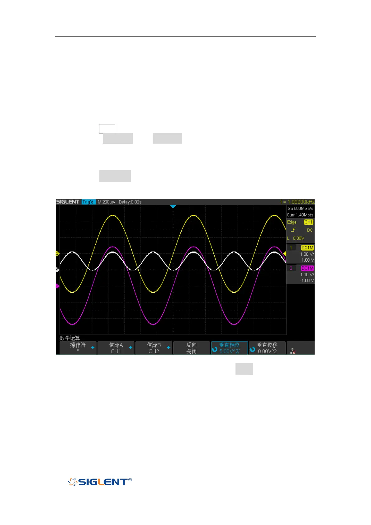 1. Press the Math button on the front panel to enter the MATH function menu.