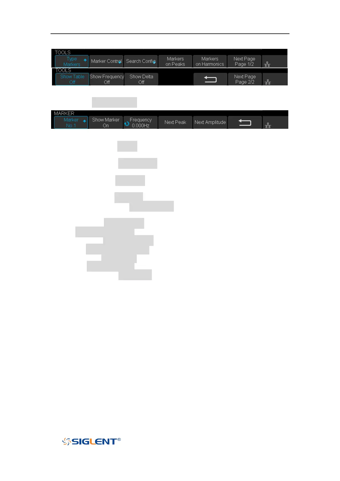 Press Markers Control softkey to enter MARKER Menu.