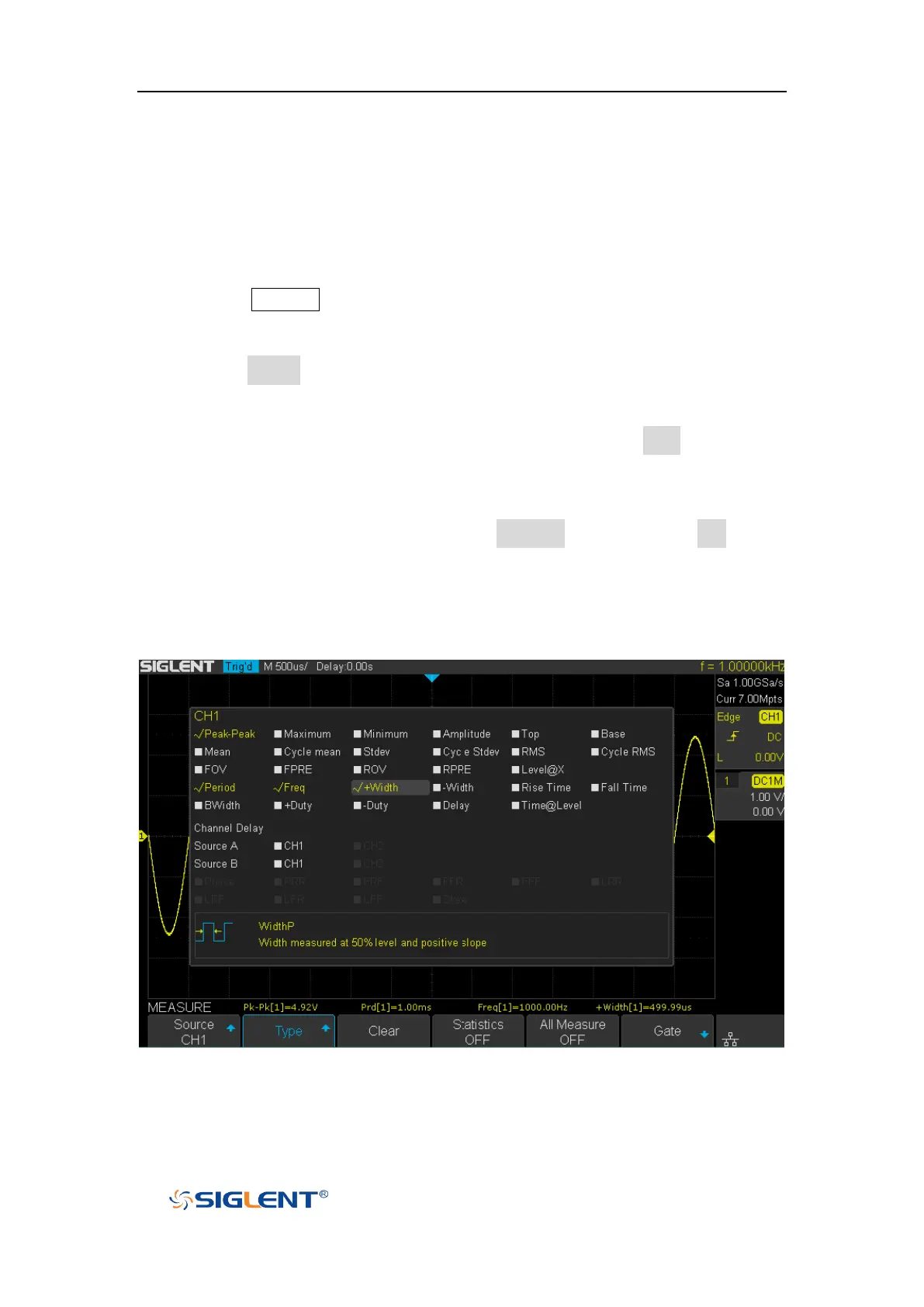 1. Press the Measure button on the front panel to enter the MEASURE function