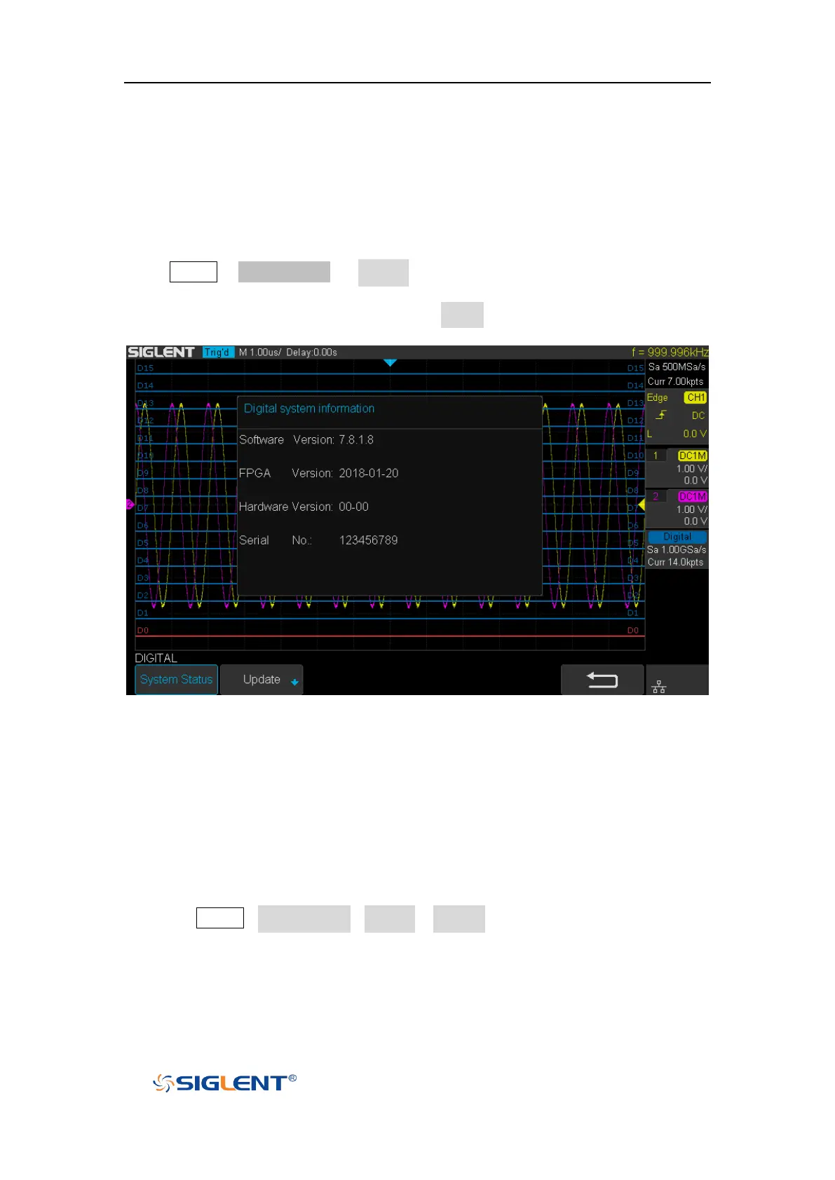 Press Digital→ NextPage2/2 → System ,then select the System Status option to