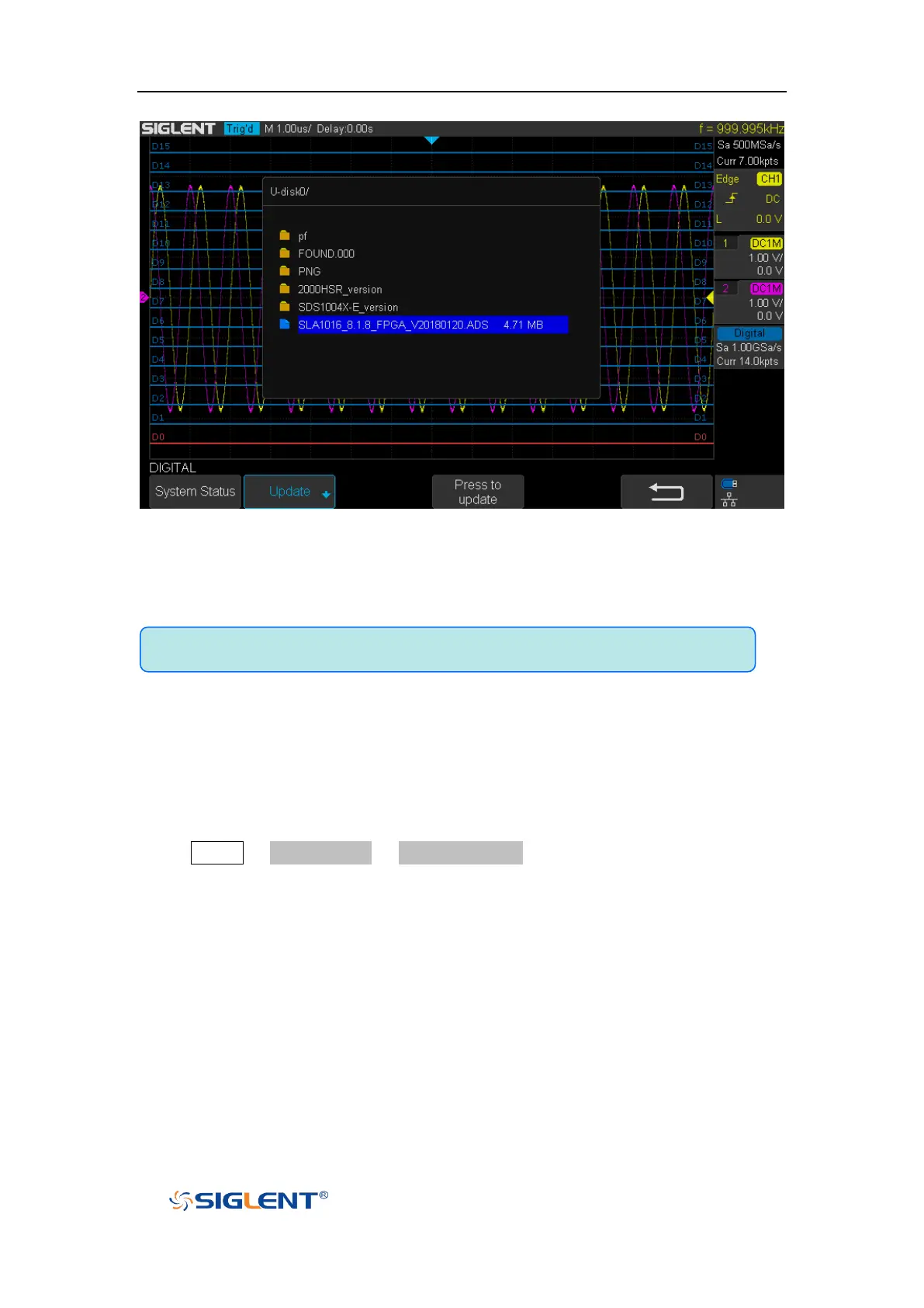Press Digital→ NextPage2/2 →Remove Device and the oscilloscope interface